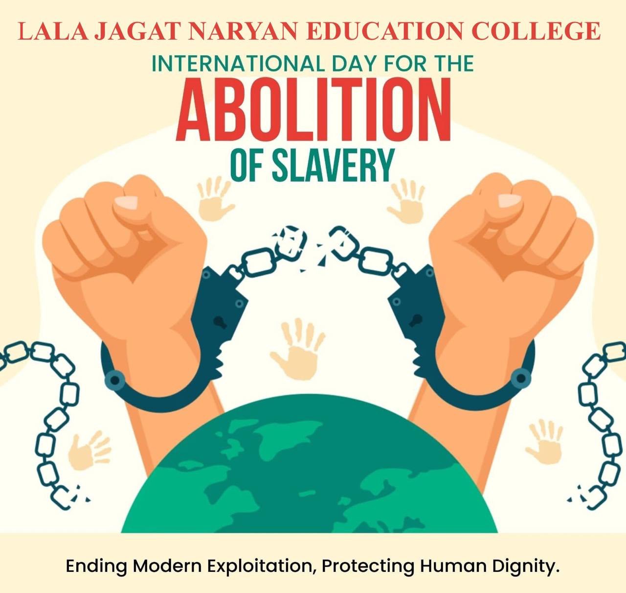 ਲਾਲਾ ਜਗਤ ਨਾਰਾਇਣ ਐਜੁਕੇਸ਼ਨ ਕਾਲਜ ਜਲਾਲਾਬਾਦ ਪੱਛਮੀ ਵਿਖੇ ਮਨਾਇਆ ਗਿਆ ਗੁਲਾਮੀ ਦੇ ਖਾਤਮੇ ਲਈ ਅੰਤਰਰਾਸ਼ਟਰੀ ਦਿਵਸ ਮਨਾਇਆ ਗਿਆ।
