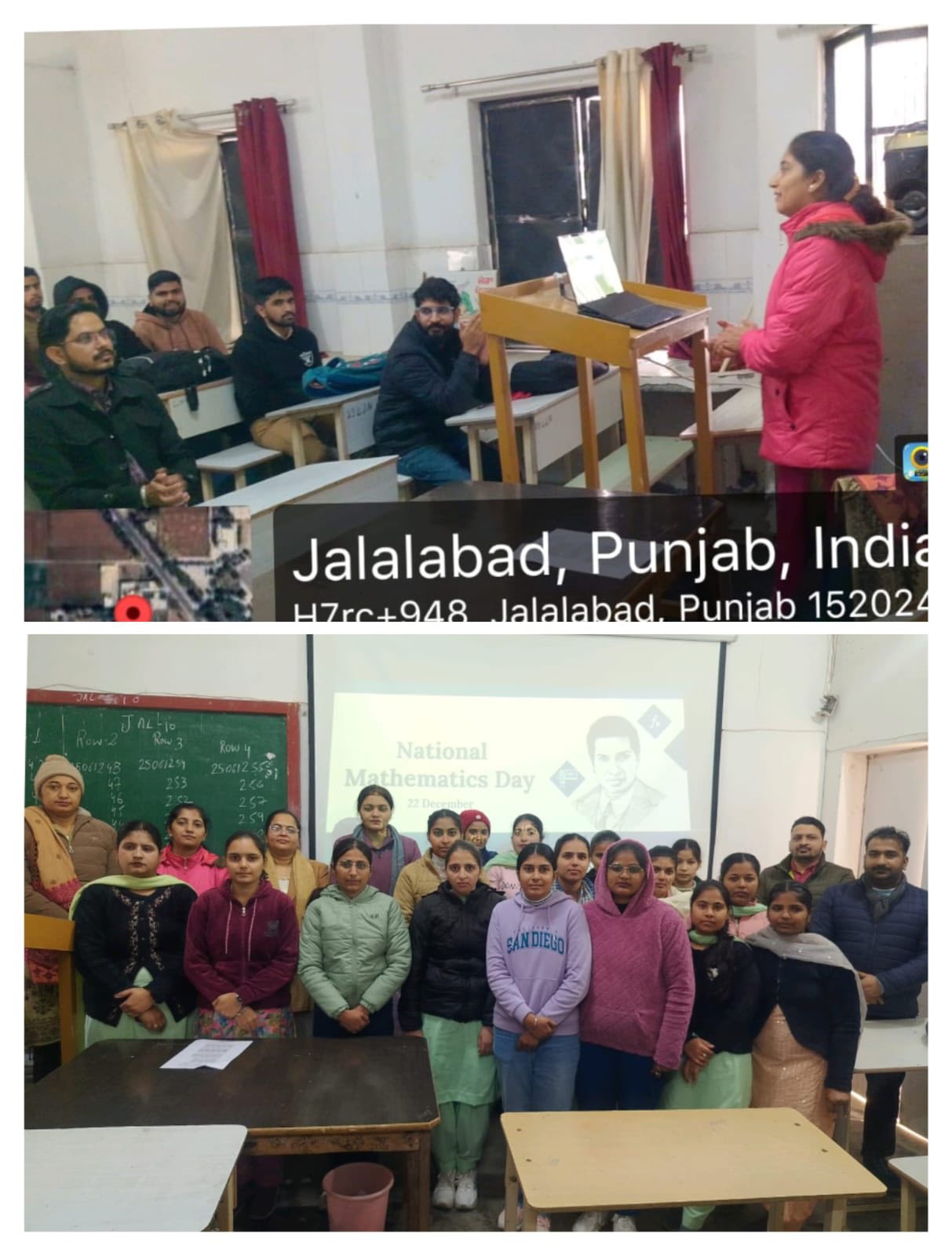ਲਾਲਾ ਜਗਤ ਨਾਰਾਇਣ ਐਜੁਕੇਸ਼ਨ ਕਾਲਜ ਜਲਾਲਾਬਾਦ ਪੱਛਮੀ ਵਿਖੇ ਮਨਾਇਆ ਗਿਆ ਰਾਸ਼ਟਰੀ ਗਣਿਤ ਦਿਵਸ।