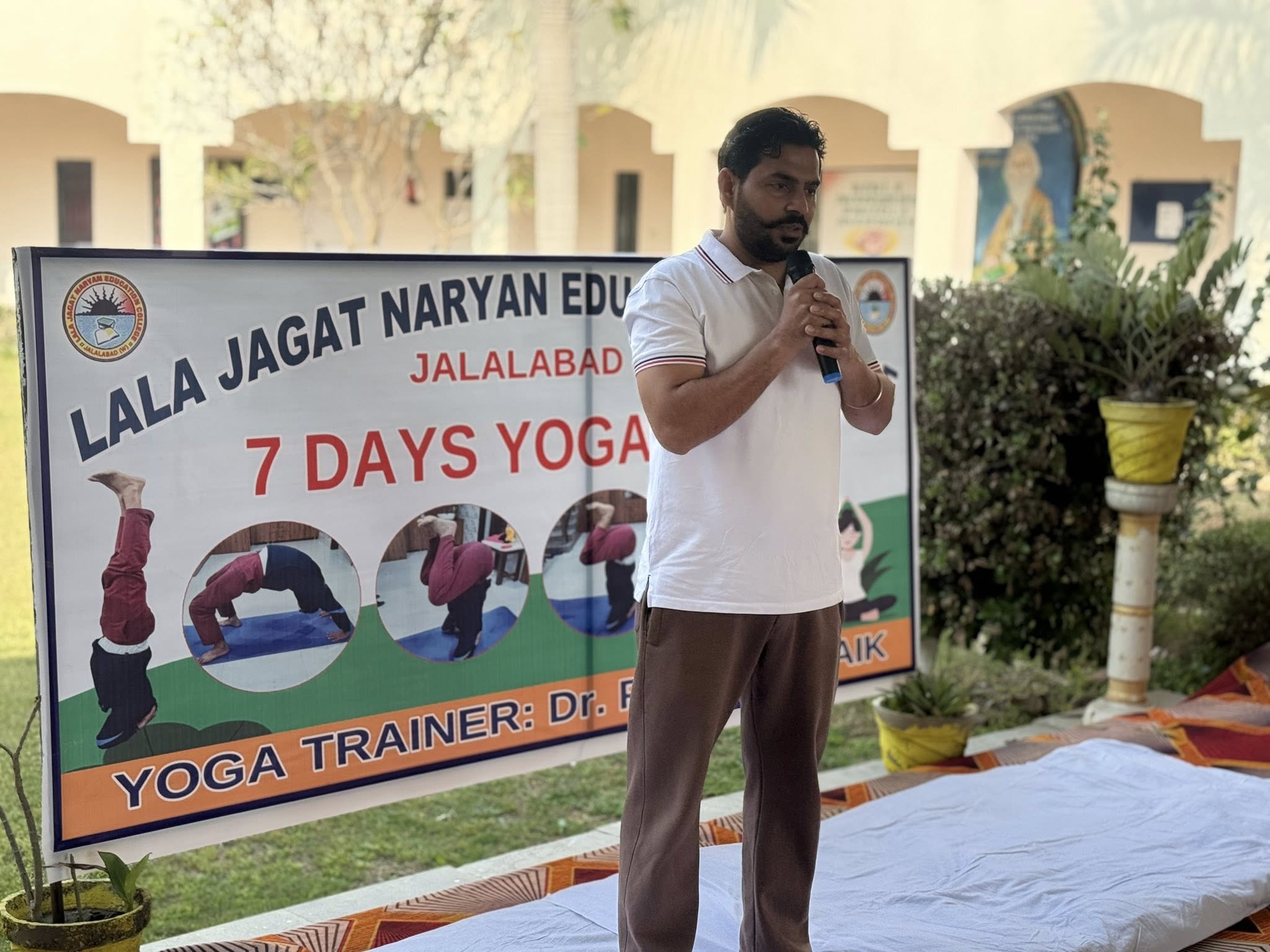 ਲਾਲਾ ਜਗਤ ਨਾਰਾਇਣ ਐਜੁਕੇਸ਼ਨ ਕਾਲਜ ਜਲਾਲਾਬਾਦ ਪੱਛਮੀ ਵਿਖੇ ਸਪਤਾਹ ਯੋਗ ਅਭਿਆਸ ਦਾ ਸਫਲਤਾਪੂਰਵਕ ਸਮਾਪਤ ਹੋਣ ਉਪਰੰਤ ਸਹਾਇਕ ਪ੍ਰੋਫ਼ੈਸਰ ਡਾ ਪ੍ਰਿੰਸ ਵਿਨਾਇਕ ( ਡੀ.ਏ.ਵੀ.ਕਾਲਜ ਜਲਾਲਾਬਾਦ) ਜੀ ਨੂੰ ਕਾਲਜ ਦੇ ਪ੍ਰਿੰਸੀਪਲ ਡਾਂ ਨੀਤਿਕਾ ਜੀ ਵੱਲੋਂ ਸ
