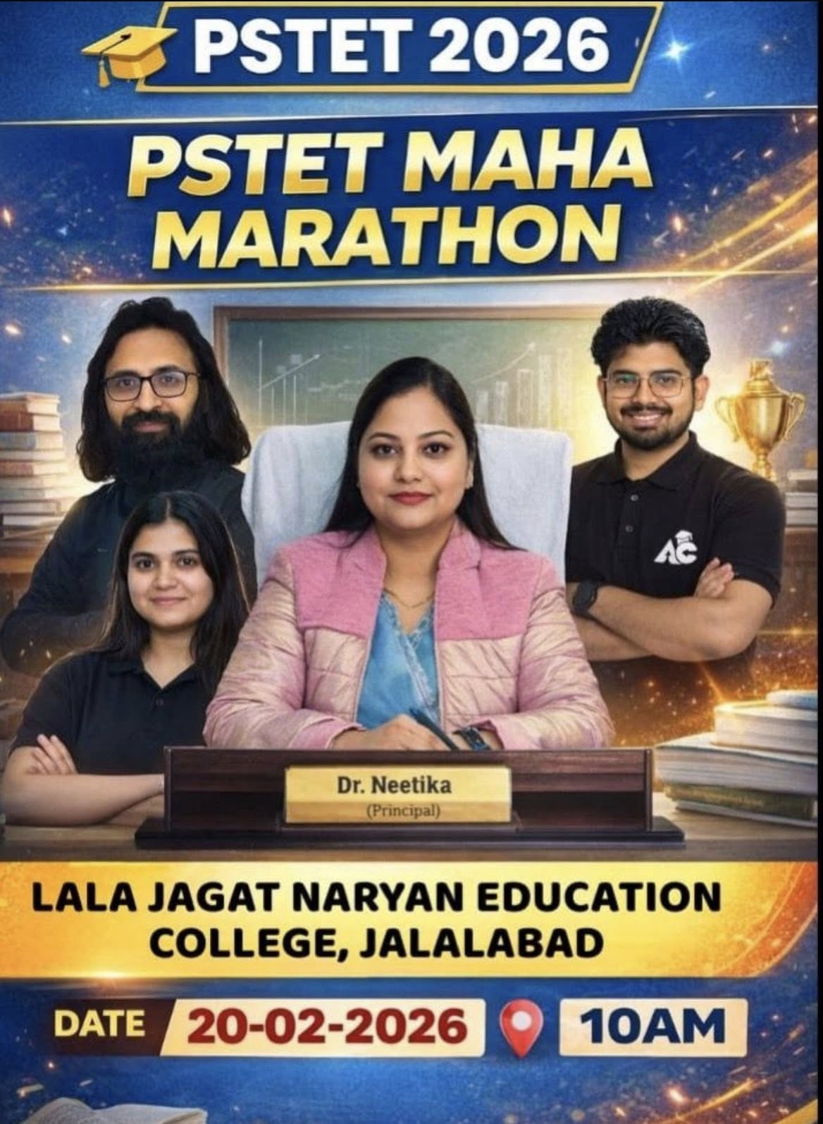 ਲਾਲਾ ਜਗਤ ਨਾਰਾਇਣ ਐਜੁਕੇਸ਼ਨ ਕਾਲਜ ਜਲਾਲਾਬਾਦ ਪੱਛਮੀ ਵਿਖੇ ਅਰੌੜਾ ਕਲਾਸਸ ( ਬਠਿੰਡਾ) ਵੱਲੋਂ PSTET ਮੈਰਾਥਨ ਕਲਾਸ ਦਾ ਆਯੋਜਨ।