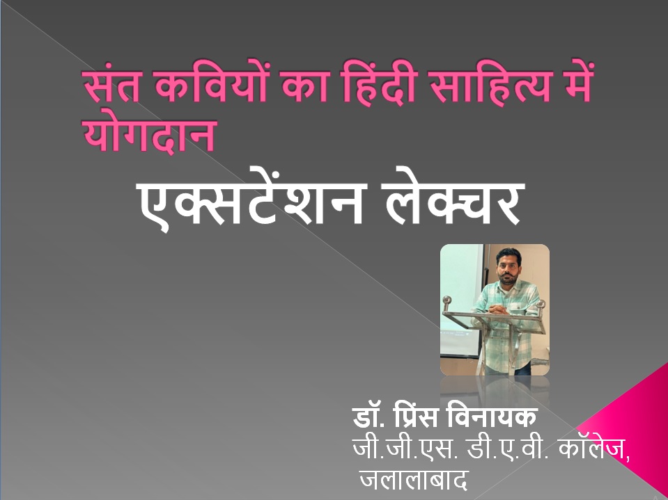 लाला जगत नारायण एजुकेशन कॉलेज जलालाबाद मे संत कवियों का हिंदी साहित्य में योगदान पर एक्सटेंशन लेक्चर