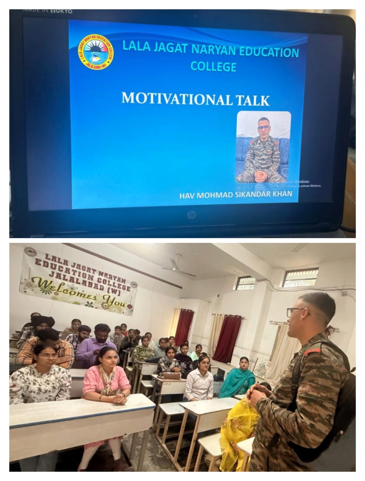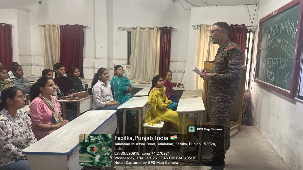 ਲਾਲਾ ਜਗਤ ਨਾਰਾਇਣ ਐਜੁਕੇਸ਼ਨ ਕਾਲਜ ਜਲਾਲਾਬਾਦ ਪੱਛਮੀ ਵਿਖੇ ਅਗਨੀਵੀਰ ਯੋਜਨਾ ਤੇ ਪ੍ਰਰੇਨਾਦਾਇਕ ਲੈਕਚਰ ਦਾ ਆਯੋਜਨ।
