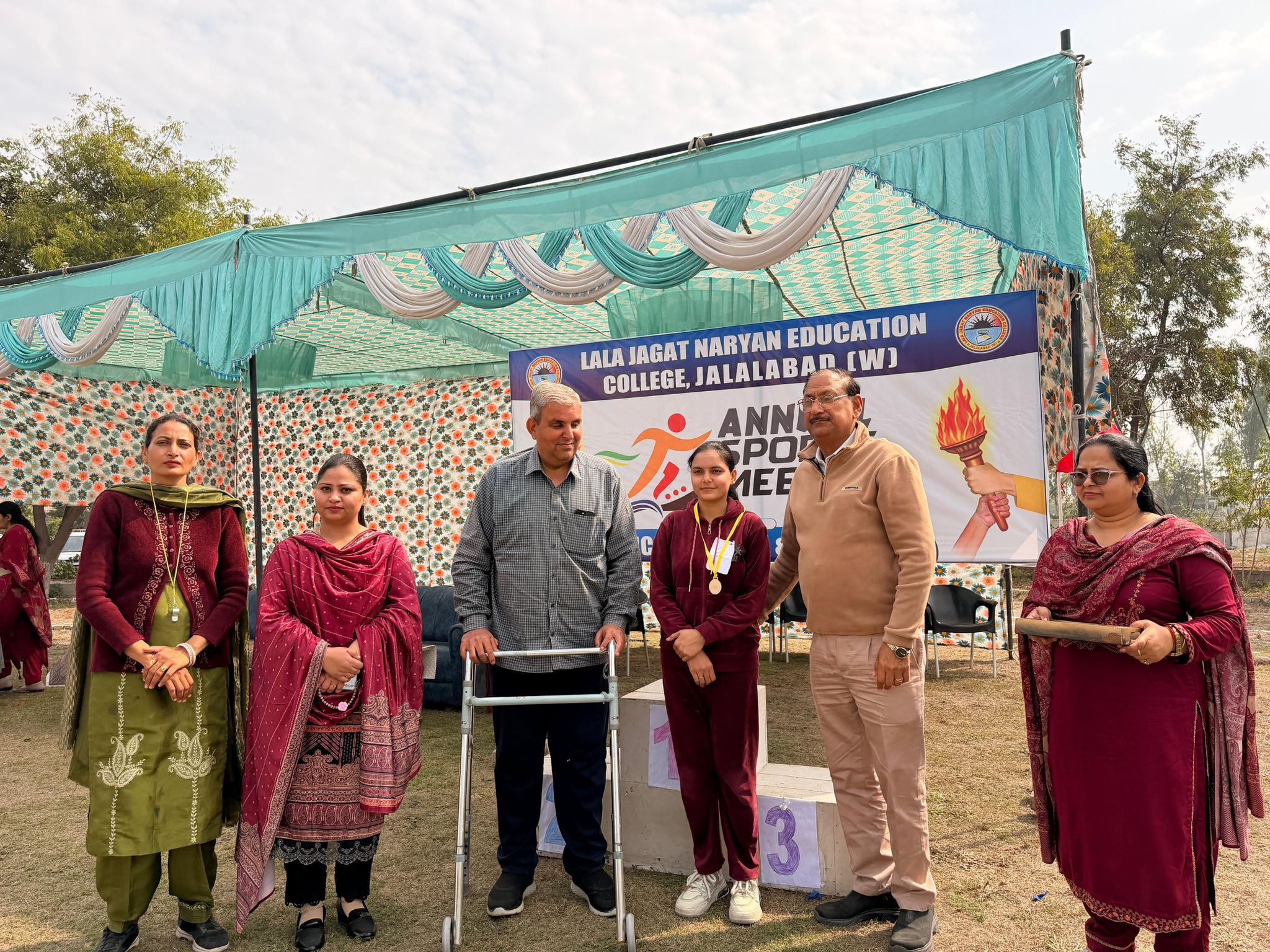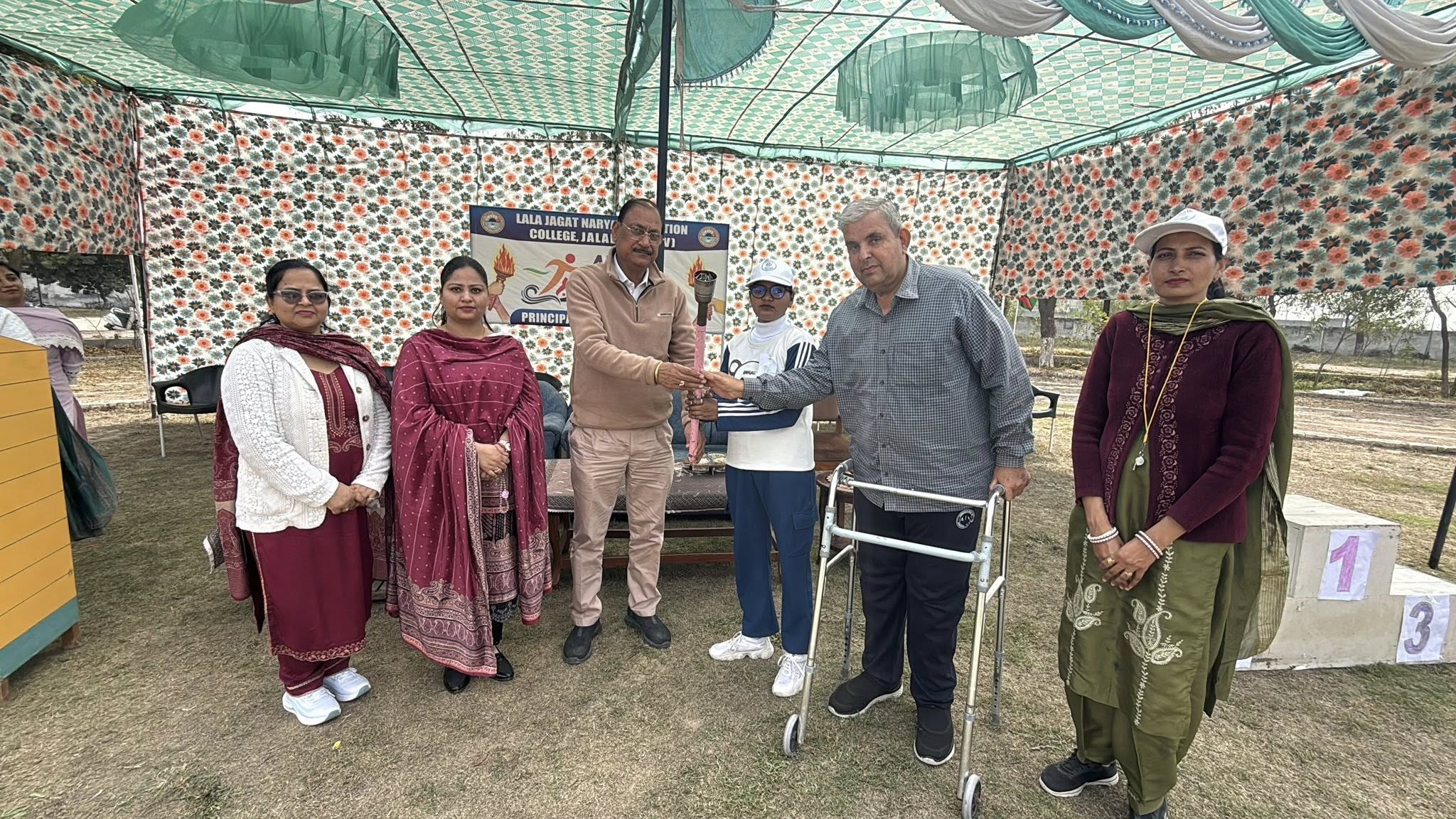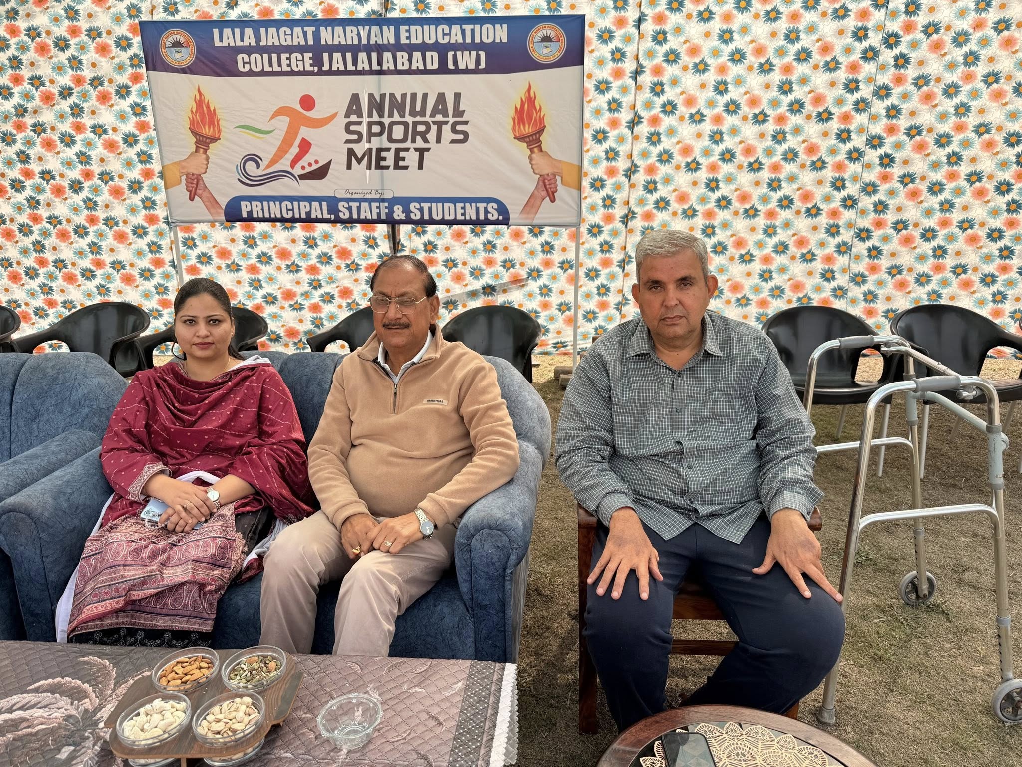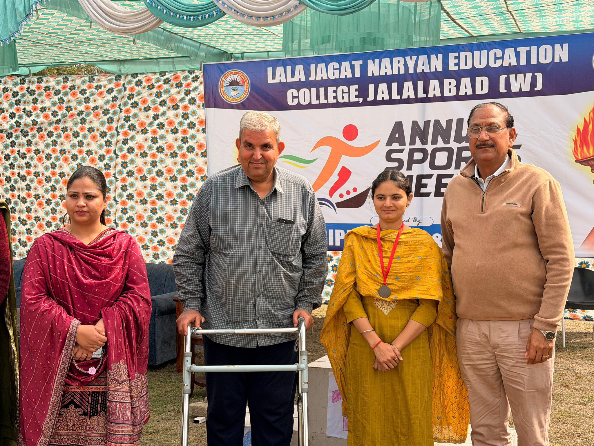 ਸਥਾਨਕ ਲਾਲਾ ਜਗਤ ਨਾਰਾਇਣ ਐਜੁਕੇਸ਼ਨ ਕਾਲਜ ਜਲਾਲਾਬਾਦ ਪੱਛਮੀ ਵਿਖੇ ਮੈਨੇਜਮੈਂਟ ਕਮੇਟੀ ਦੇ ਚੇਅਰਮੈਨ ਸ੍ਰੀ ਅਸ਼ੋਕ ਕੁਮਾਰ ਅਨੇਜਾ ਜੀ, ਪ੍ਰਧਾਨ ਸ੍ਰੀ ਪ੍ਰਦੀਪ ਕੁਮਾਰ ਚੁੱਘ ਜੀ, ਖਜ਼ਾਨਚੀ ਸ੍ਰੀ ਚੰਦਰ ਸ਼ੇਖਰ ਗੂੰਬਰ ਜੀ, ਸਿਖਿਆ ਸ਼ਾਸਤਰੀ ਸਰਦਾਰ ਗੁਰਬਖਸ਼ ਸਿੰਘ ਖੁਰਾਣਾ ਜੀ, ਪ੍ਰਿੰਸੀਪਲ ਡਾ ਨੀਤਿਕਾ ਜੀ ਦੀ ਯੋਗ ਅਗਵਾਈ ਹੇਠ 17/02/2026 ਨੂੰ ਬਹੁਤ ਹੀ ਉਤਸ਼ਾਹ ਅਤੇ ਖੇਡ ਭਾਵਨਾ ਨਾਲ ਸਲਾਨਾ ਸਪੋਰਟਸ ਡੇਅ (Sports Day) ਦਾ ਆਯੋਜਨ ਕੀਤਾ ਗਿਆ ਇਸ ਸਮਾਗਮ ਦਾ ਉਦੇਸ਼ ਵਿਦਿਆਰਥੀਆਂ ਵਿੱਚ ਸਰੀਰਕ ਤੰਦਰੁਸਤੀ, ਅਨੁਸ਼ਾਸਨ ਅਤੇ ਟੀਮ ਵਰਕ ਦੀ ਭਾਵਨਾ ਨੂੰ ਉਤਸ਼ਾਹਿਤ ਕਰਨਾ ਸੀ। ਇਸ ਸਪੋਰਟਸ ਡੇਅ ਦੀ ਸ਼ੁਰੂਆਤ ਮਾਨਯੋਗ ਕਾਲਜ ਦੇ ਚੇਅਰਮੈਨ ਸ੍ਰੀ ਅਸ਼ੋਕ ਕੁਮਾਰ ਅਨੇਜਾ ਜੀ ਵੱਲੋਂ ਝੰਡਾ ਲਹਿਰਾਉਣ ਅਤੇ ਮਸ਼ਾਲ ਜਗਾਉਣ ਨਾਲ ਕੀਤੀ ਗਈ। ਇਸ ਤੋਂ ਬਾਅਦ ਵਿਦਿਆਰਥੀਆਂ ਦੁਆਰਾ ਇੱਕ ਸ਼ਾਨਦਾਰ ਮਾਰਚ ਪਾਸਟ ਕੀਤਾ ਗਿਆ, ਜਿਸ ਵਿਚ ਵਿਦਿਆਰਥੀਆਂ ਨੇ ਵੱਧ ਚੜ੍ਹ ਕੇ ਹਿੱਸਾ ਲਿਆ। ਇਸ ਦੌਰਾਨ 100 ਮੀਟਰ, 200 ਮੀਟਰ ਅਤੇ 400 ਮੀਟਰ, 800 ਮੀਟਰ ਰੇਸ, ਇਸ ਤੋਂ ਇਲਾਵਾ ਰੱਸਾਕਸ਼ੀ ( Tag Of War ) ਵਰਗੀਆਂ ਰੋਮਾਂਚਕ ਪ੍ਰਤੀਯੋਗਤਾਵਾਂ ਦੇਖਣ ਨੂੰ ਮਿਲਿਆ। ਵਿਦਿਆਰਥੀਆਂ ਨੇ ਇਸ ਸਪੋਰਟਸ ਮੀਟ ਵਿੱਚ ਵੱਧ ਚੜ੍ਹ ਕੇ ਹਿੱਸਾ ਲਿਆ ਅਤੇ ਆਪਣੀ ਪ੍ਰਤੀਭਾ ਦਾ ਪ੍ਰਦਰਸ਼ਨ ਕੀਤਾ। ਸਮਾਗਮ ਦੇ ਅੰਤ ਵਿੱਚ ਜੇਤੂ ਵਿਦਿਆਰਥੀਆਂ ਨੂੰ ਮੈਡਲ ਦਿੱਤੇ ਗਏ। ਇਸ ਮੌਕੇ ਤੇ ਕਾਲਜ ਦੇ ਪ੍ਰਿੰਸੀਪਲ ਡਾਂ ਨੀਤਿਕਾ ਜੀ ਨੇ ਆਪਣੇ ਭਾਸ਼ਣ ਦੇ ਦੌਰਾਨ ਵਿਦਿਆਰਥੀਆਂ ਨੂੰ ਖੇਡਾਂ ਵਿੱਚ ਸਰਗਰਮ ਹਿੱਸਾ ਲੈਣ ਲਈ ਅਤੇ ਜੀਵਨ ਵਿੱਚ ਅਨੁਸ਼ਾਸਨ ਤੇ ਮਿਹਨਤ ਨੂੰ ਅਪਣਾਉਣ ਲਈ ਪ੍ਰੇਰਿਤ ਕੀਤਾ।