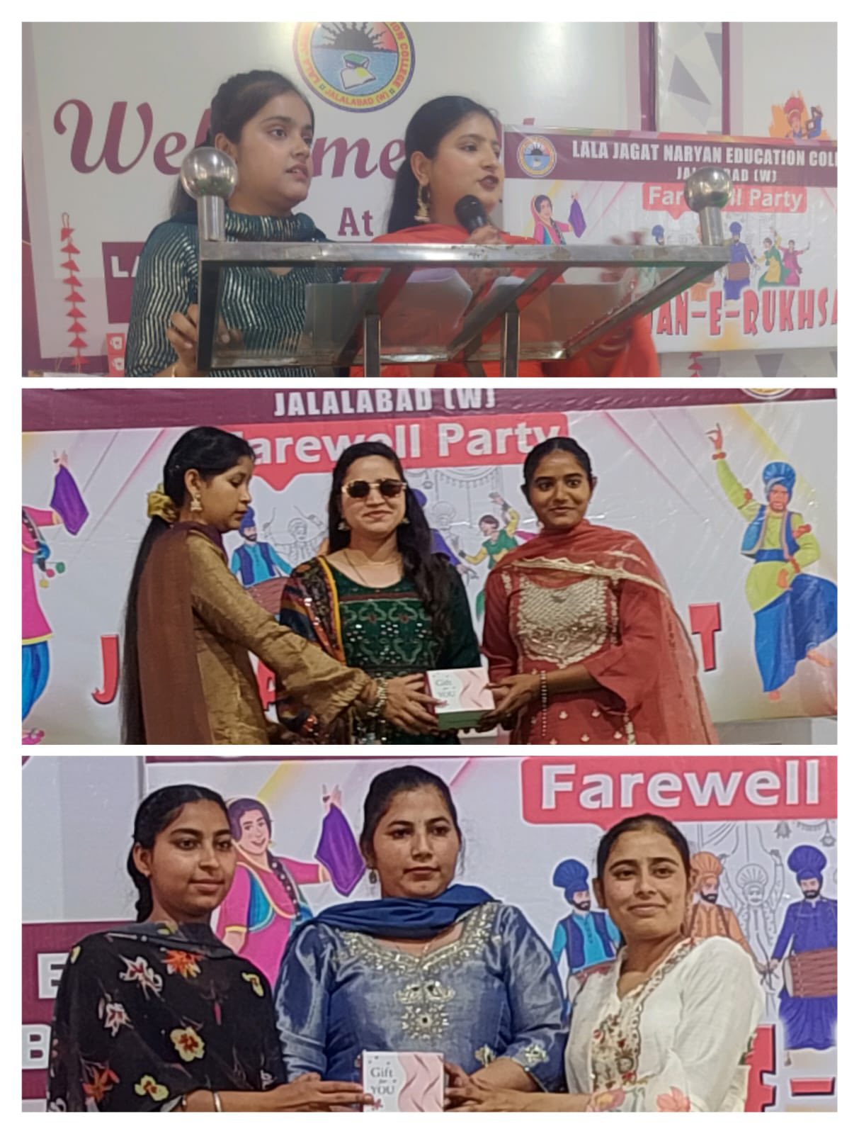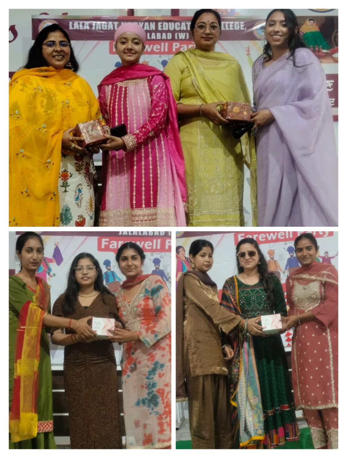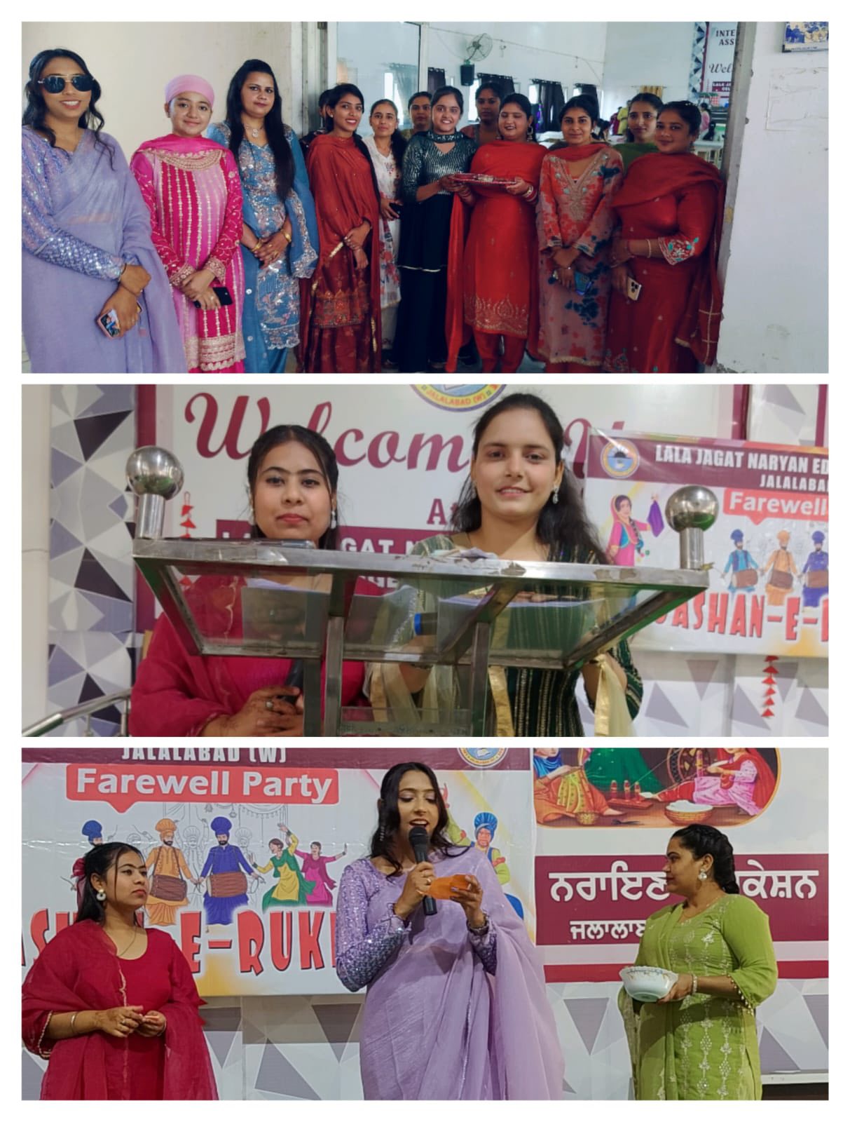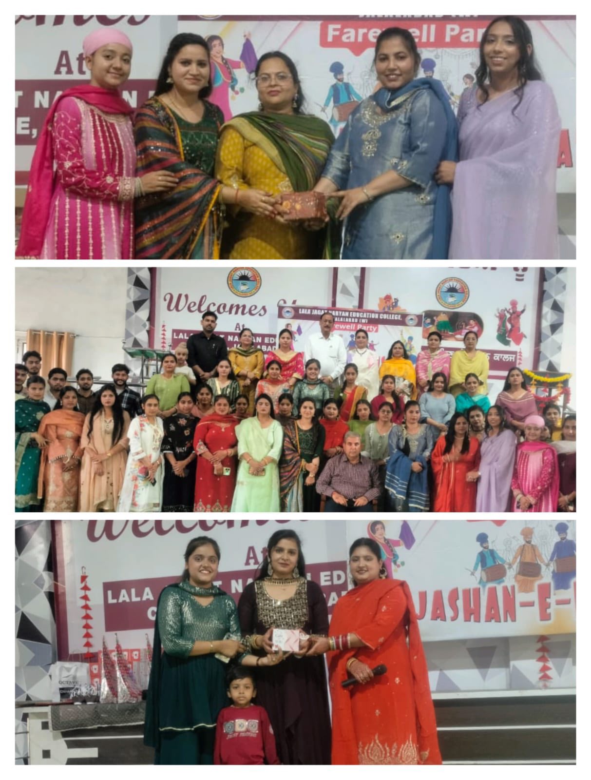 ਸਥਾਨਕ ਲਾਲਾ ਜਗਤ ਨਾਰਾਇਣ ਐਜੁਕੇਸ਼ਨ ਕਾਲਜ ਜਲਾਲਾਬਾਦ ਪੱਛਮੀ ਵਿਖੇ ਮੈਨੇਜਮੈਂਟ ਕਮੇਟੀ ਦੇ ਚੇਅਰਮੈਨ ਸ੍ਰੀ ਅਸ਼ੋਕ ਕੁਮਾਰ ਅਨੇਜਾ ਜੀ, ਪ੍ਰਧਾਨ ਸ੍ਰੀ ਪ੍ਰਦੀਪ ਕੁਮਾਰ ਚੁੱਘ ਜੀ, ਖਜ਼ਾਨਚੀ ਸ੍ਰੀ ਚੰਦਰ ਸ਼ੇਖਰ ਗੂੰਬਰ ਜੀ, ਸਿਖਿਆ ਸ਼ਾਸਤਰੀ ਸਰਦਾਰ ਗੁਰਬਖਸ਼ ਸਿੰਘ ਖੁਰਾਣਾ ਜੀ, ਪ੍ਰਿੰਸੀਪਲ ਡਾ ਨੀਤਿਕਾ ਜੀ ਦੀ ਯੋਗ ਅਗਵਾਈ ਅਧੀਨ ਕਾਲਜ ਵਿੱਚ ਅੰਤਿਮ ਸਾਲ ਦੇ ਵਿਦਿਆਰਥੀਆਂ ਡੀ. ਐੱਲ.ਐਂਡ 2023-2025 ਨੂੰ ਵਿਦਾਇਗੀ ਪਾਰਟੀ ਦੇਣ ਲਈ ਇੱਕ ਸ਼ਾਨਦਾਰ ਸਮਾਰੋਹ ਜਸ਼ਨ ਏ ਰੁਖ਼ਸਤ ਦਾ ਆਯੋਜਨ ਕੀਤਾ ਗਿਆ। ਇਸ ਸਮਾਰੋਹ ਦਾ ਮੁੱਖ ਮਕਸਦ ਸੀਨੀਅਰ ਵਿਦਿਆਰਥੀਆਂ ਨੂੰ ਉਨ੍ਹਾਂ ਦੇ ਸੁਨਹਿਰੀ ਭਵਿੱਖ ਲਈ ਸ਼ੁਭਕਾਮਨਾਵਾਂ ਦੇਣਾ ਸੀ। ਜਿਸ ਦੀ ਸ਼ੁਰੂਆਤ ਜੂਨੀਅਰ ਵਿਦਿਆਰਥੀਆਂ ਨੇ ਆਪਣੇ ਸੀਨੀਅਰ ਦਾ ਫੁੱਲਾ ਨਾਲ ਸਵਾਗਤ ਕਰਕੇ ਕੀਤੀ। ਇਸ ਦੌਰਾਨ ਰੰਗਮੰਚ ਪ੍ਰੈਰਗਾਮ ਪੇਸ਼ ਕੀਤੇ ਗਏ, ਜਿਸ ਵਿਚ ਗੀਤ ਨਾਚ, ਸ਼ੇਅਰ ਅਤੇ ਨਾਟਕ ਵਰਗੀਆਂ ਵੰਨਗੀਆਂ ਪੇਸ਼ ਕੀਤੀਆਂ ਗਈਆਂ ਵਿਦਿਆਰਥੀਆਂ ਨੇ ਕਾਲਜ ਵਿੱਚ ਬਿਤਾਏ ਆਪਣੇ ਪੁਰਾਣੇ ਦਿਨਾਂ ਨੂੰ ਯਾਦ ਕਰਦਿਆਂ ਆਪਣੇ ਤਜ਼ਰਬਿਆਂ ਨੂੰ ਸਾਂਝਾ ਕੀਤਾ। ਫਿਰ ਸੱਭਿਆਚਾਰ ਪ੍ਰੋਗਰਾਮ ਤੋਂ ਬਾਅਦ, ਸੀਨੀਅਰ ਵਿਦਿਆਰਥੀਆਂ ਨੂੰ ਮਿਸ ਐਂਡ ਮਿਸਟਰ ਫੇਅਰਵੈਲ ਵਰਗੇ ਖਿਤਾਬ ਨਾਲ ਸਨਮਾਨਿਤ ਕੀਤਾ ਗਿਆ। ਅੰਤ ਵਿੱਚ ਕਾਲਜ ਦੇ ਪ੍ਰਿੰਸੀਪਲ ਡਾਂ ਨੀਤਿਕਾ ਜੀ ਨੇ ਵਿਦਿਆਰਥੀਆਂ ਨੂੰ ਸੰਬੋਧਨ ਕਰਦਿਆਂ ਕਿਹਾ ਕਿ ਉਨ੍ਹਾਂ ਦੇ ਭਵਿੱਖ ਲਈ ਸ਼ੁਭਕਾਮਨਾਵਾਂ ਦਿੱਤੀਆਂ ਅਤੇ ਉਨ੍ਹਾਂ ਨੂੰ ਜੀਵਨ ਵਿੱਚ ਸਫਲਤਾ ਪ੍ਰਾਪਤ ਕਰਨ ਲਈ ਪ੍ਰੇਰਿਤ ਕੀਤਾ।