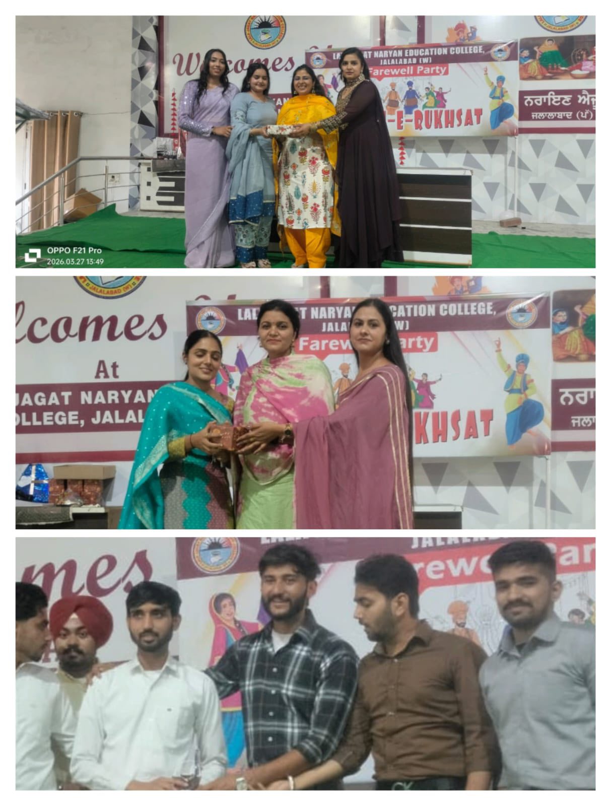 ਲਾਲਾ ਜਗਤ ਨਾਰਾਇਣ ਐਜੁਕੇਸ਼ਨ ਕਾਲਜ ਜਲਾਲਾਬਾਦ ਪੱਛਮੀ ਵਿਖੇ ਕਰਵਾਇਆ ਗਿਆ ਵਿਦਿਆਰਥੀਆਂ ਦਾ ਵਿਦਾਇਗੀ ਸਮਾਰੋਹ।