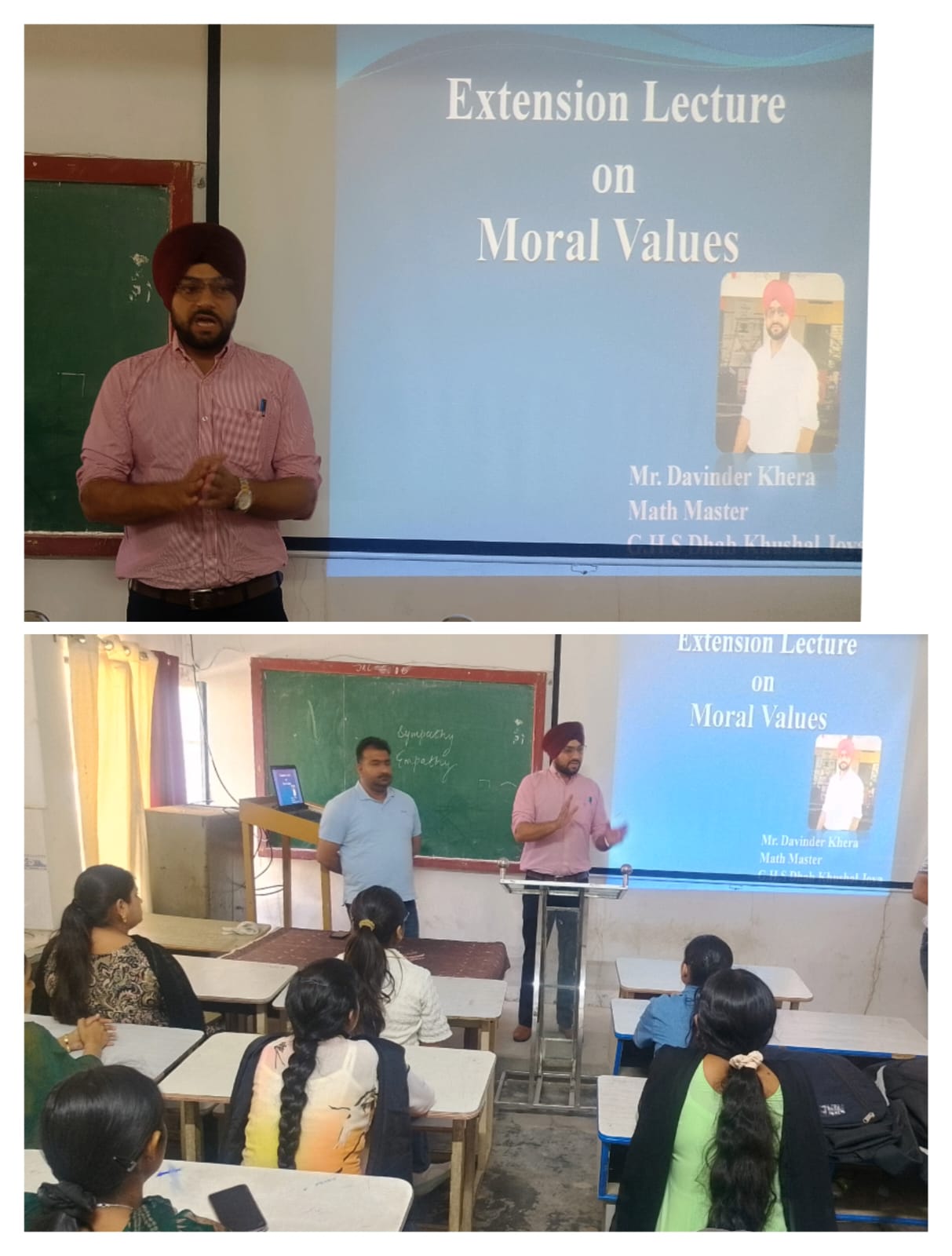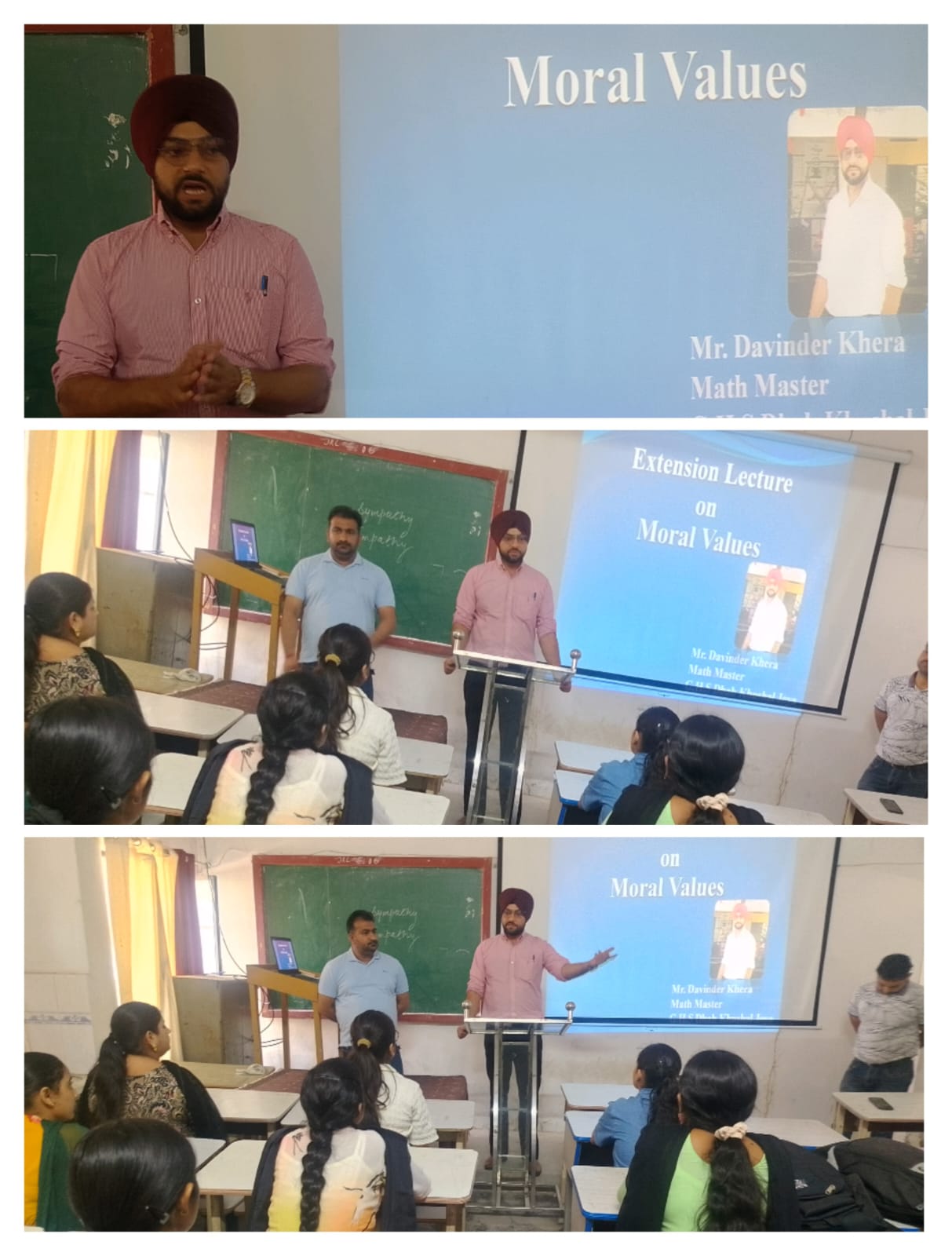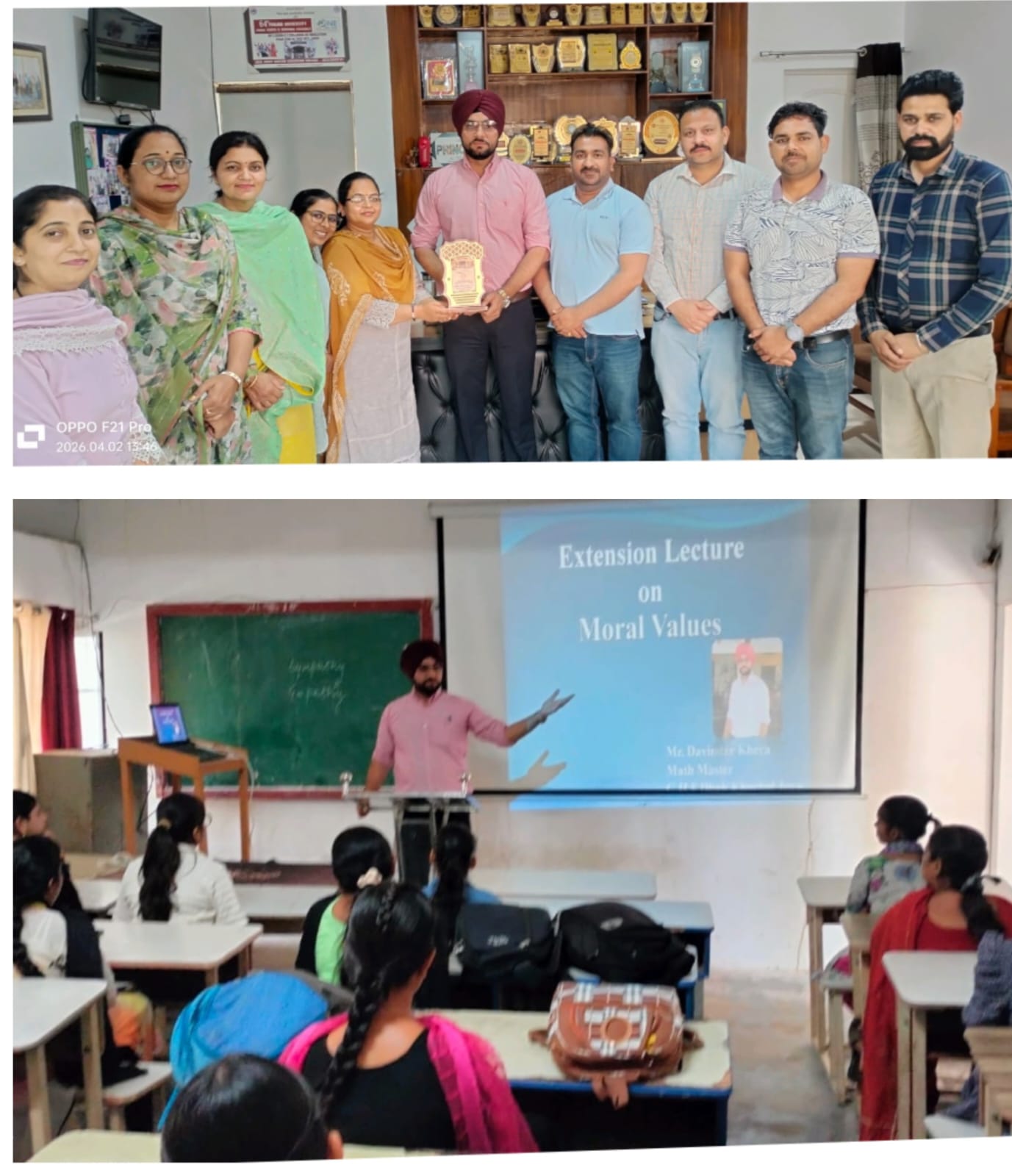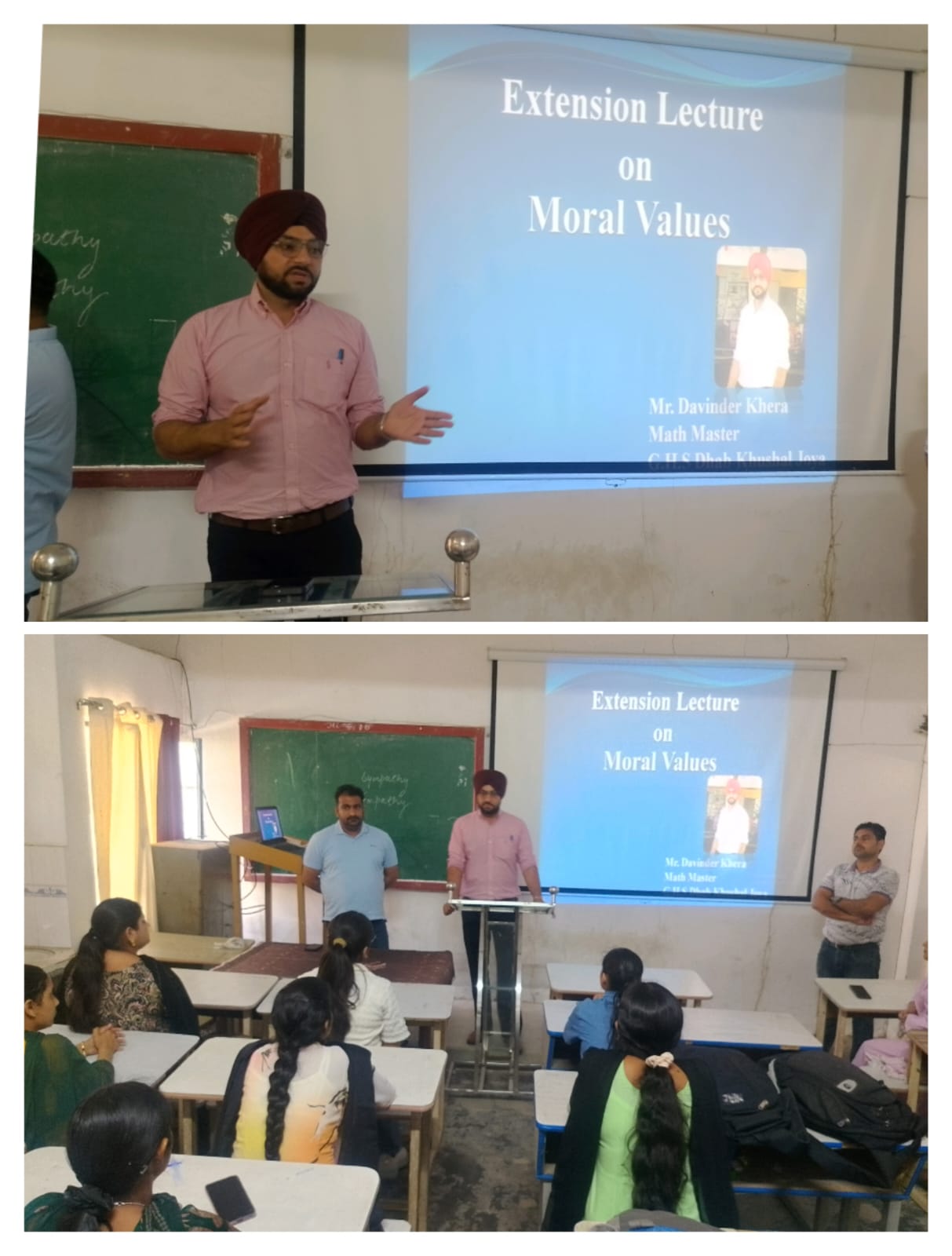 ਸਥਾਨਕ ਲਾਲਾ ਜਗਤ ਨਾਰਾਇਣ ਐਜੁਕੇਸ਼ਨ ਕਾਲਜ ਜਲਾਲਾਬਾਦ ਪੱਛਮੀ ਵਿਖੇ ਮੈਨੇਜਮੈਂਟ ਕਮੇਟੀ ਦੇ ਚੇਅਰਮੈਨ ਸ੍ਰੀ ਅਸ਼ੋਕ ਕੁਮਾਰ ਅਨੇਜਾ ਜੀ, ਪ੍ਰਧਾਨ ਸ੍ਰੀ ਪ੍ਰਦੀਪ ਕੁਮਾਰ ਚੁੱਘ ਜੀ, ਖਜ਼ਾਨਚੀ ਸ੍ਰੀ ਚੰਦਰ ਸ਼ੇਖਰ ਗੂੰਬਰ ਜੀ, ਸਿਖਿਆ ਸ਼ਾਸਤਰੀ ਸਰਦਾਰ ਗੁਰਬਖਸ਼ ਸਿੰਘ ਖੁਰਾਣਾ ਜੀ, ਪ੍ਰਿੰਸੀਪਲ ਡਾ ਨੀਤਿਕਾ ਜੀ ਦੀ ਯੋਗ ਅਗਵਾਈ ਅਧੀਨ ਕਾਲਜ ਵਿੱਖੇ ਗੁਰੂ ਗੋਬਿੰਦ ਸਿੰਘ ਸਟੱਡੀ ਸਰਕਲ ਕਲੱਬ ਦੇ ਸਹਿਯੋਗ ਨਾਲ ਨੈਤਿਕ ਮੁੱਲਾਂ ( Moral Values) ਤੇ ਐਕਸਟੈਨਸ਼ਨ ਲੈਕਚਰ ਕਰਵਾਇਆ ਗਿਆ। ਜਿਸ ਵਿੱਚ ਸਰਦਾਰ ਦਵਿੰਦਰ ਸਿੰਘ ਖੇੜਾ ਜੋਂ ਕਿ ਗੌਰਮਿੰਟ ਹਾਈ ਸਕੂਲ ਢਾਬ ਖੁਸ਼ਹਾਲ ਜੋਇਆ ਵਿਖੇ ਮੈਥ ਮਾਸਟਰ ਦੇ ਤੌਰ ਤੇ ਸੇਵਾ ਨਿਭਾਅ ਰਹੇ ਹਨ ਜੋਂ ਕਿ ਵਿਸ਼ੇਸ਼ ਤੌਰ ਤੇ ਕਾਲਜ ਵਿੱਖੇ ਪਹੁੰਚੇ। ਇਸ ਦੌਰਾਨ ਉਨ੍ਹਾਂ ਨੇ ਵਿਦਿਆਰਥੀਆਂ ਨੂੰ ਦੱਸਿਆ ਕਿ ਨੈਤਿਕ ਕਦਰਾਂ ਕੀਮਤਾਂ ਜੋਂ ਕਿ ਸਾਡੇ ਜੀਵਨ ਦਾ ਆਧਾਰ ਹਨ, ਜੋਂ ਸੱਚ, ਇਮਾਨਦਾਰੀ, ਪਿਆਰ, ਸਤਿਕਾਰ ਅਤੇ ਭਾਈਚਾਰਕ ਸਾਂਝ ਵਰਗੇ ਗੁਣਾ ਰਾਹੀਂ ਇਨਸਾਨ ਨੂੰ ਇੱਕ ਚੰਗਾ ਇਨਸਾਨ ਨੂੰ ਇੱਕ ਚੰਗਾ ਇਨਸਾਨ ਬਣਾਉਂਦੀਆਂ ਹਨ ਤੇ ਵਿਅਕਤੀਗਤ ਵਿਕਾਸ ਲਈ ਮਨੁੱਖ ਦੇ ਚਰਿੱਤਰ ਨੂੰ ਮਜ਼ਬੂਤ ਕਰਦੀਆਂ ਹਨ। ਇਸ ਮੌਕੇ ਤੇ ਕਾਲਜ ਦੇ ਪ੍ਰਿੰਸੀਪਲ ਡਾਂ ਨੀਤਿਕਾ ਜੀ ਨੇ ਸਰਦਾਰ ਦਵਿੰਦਰ ਸਿੰਘ ਖੇੜਾ ਜੀ ਦਾ ਸਨਮਾਨ ਚਿੰਨ੍ਹ ਦੇ ਕੇ ਧੰਨਵਾਦ ਕੀਤਾ। ਇਸ ਮੌਕੇ ਤੇ ਕਾਲਜ ਦਾ ਸਮੂਹ ਸਟਾਫ ਮੈਂਬਰ ਤੇ ਵਿਦਿਆਰਥੀ ਮੌਜੂਦ ਸਨ।