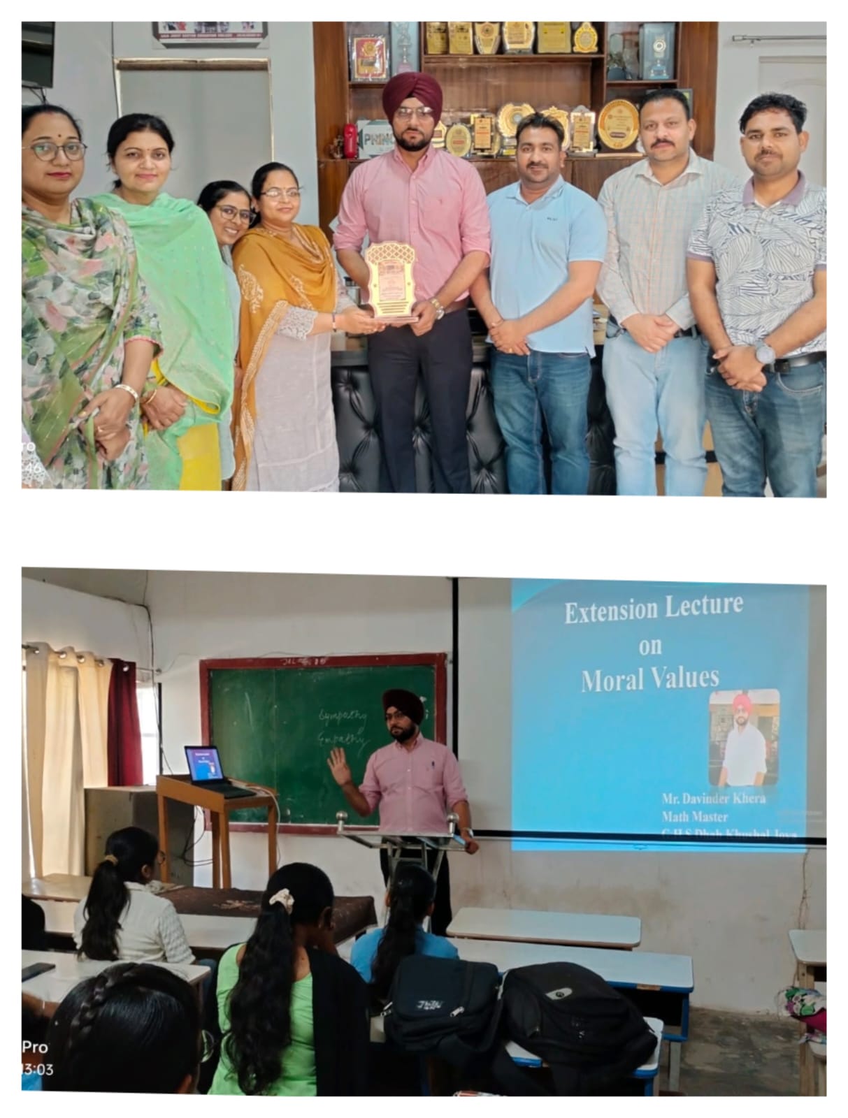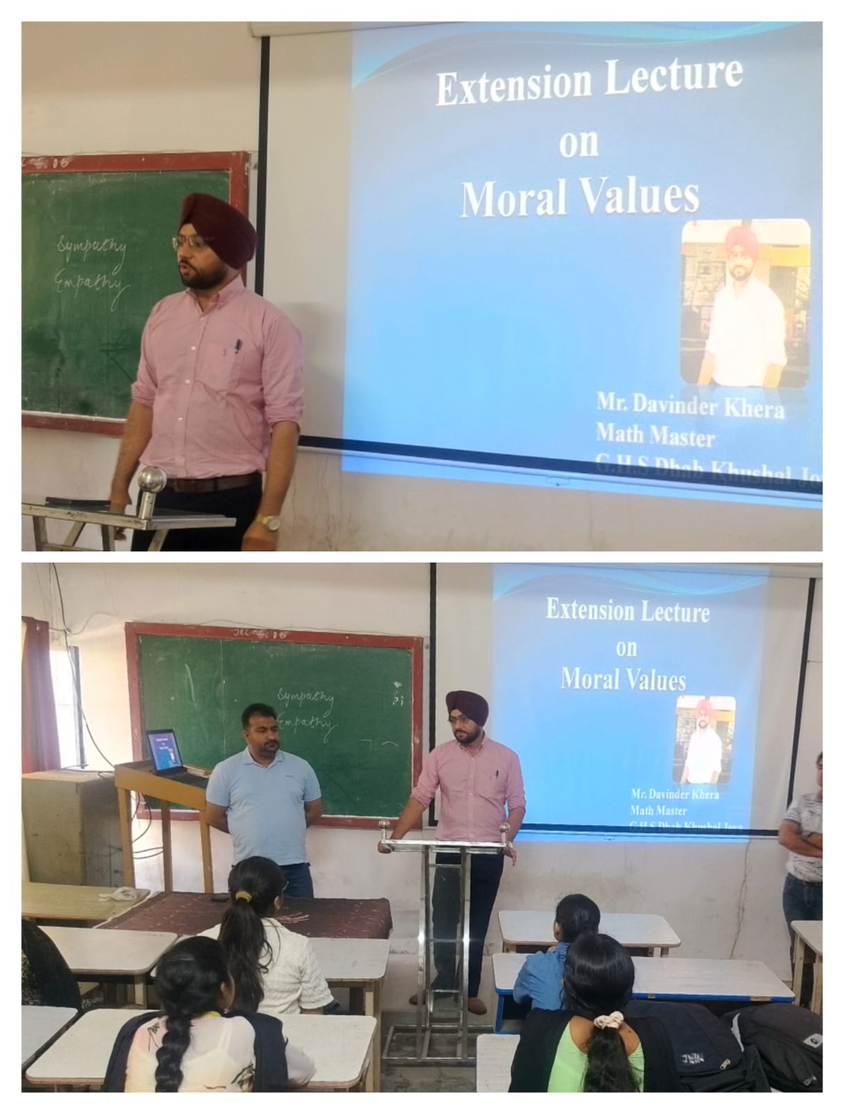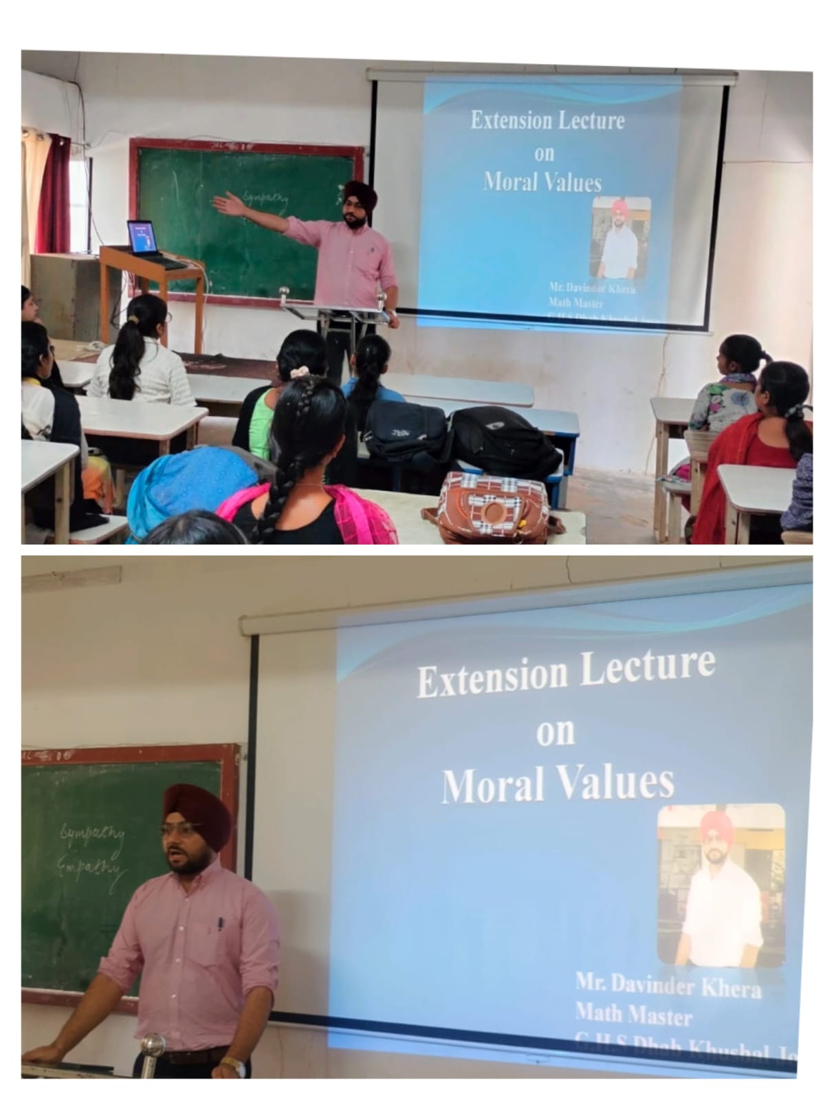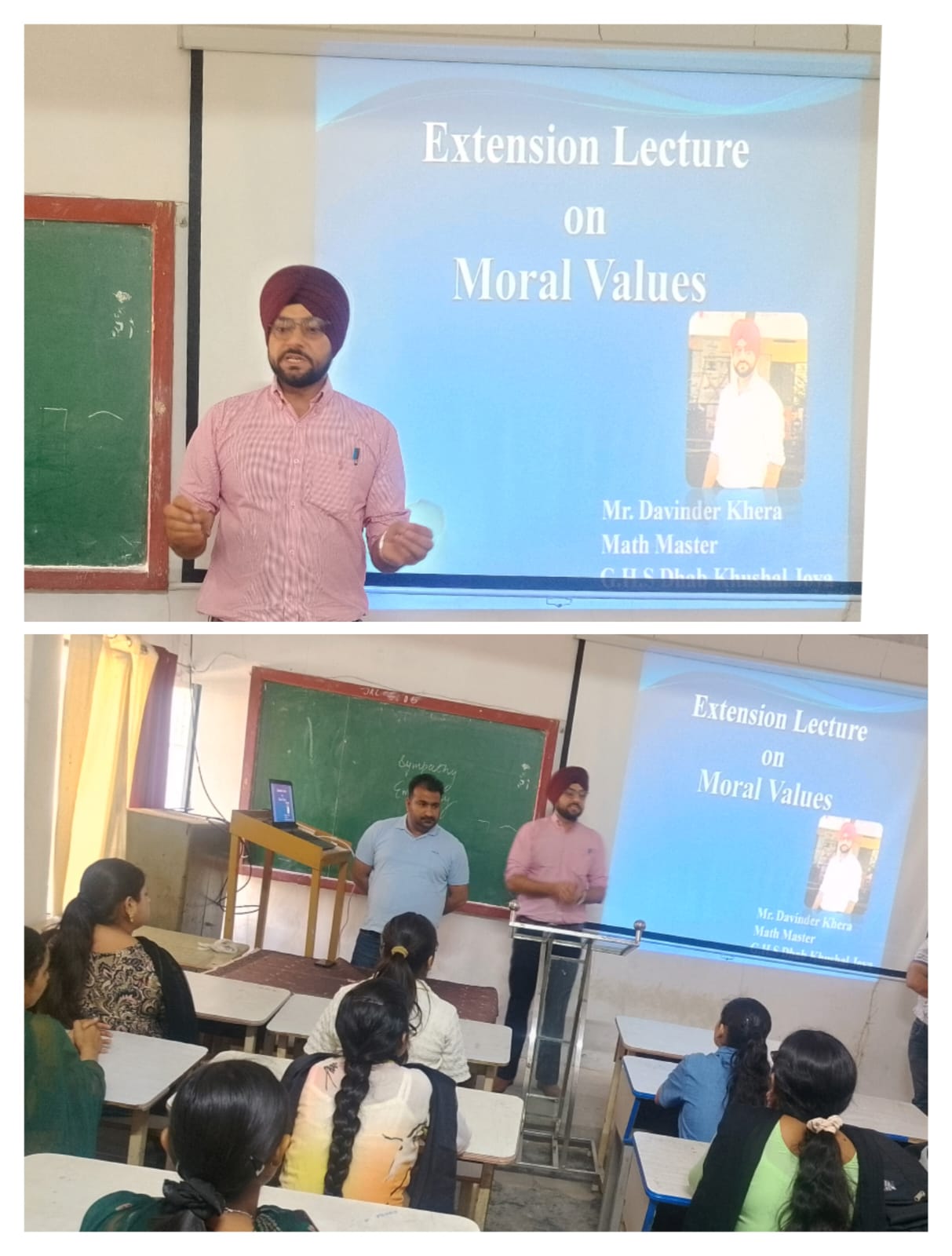ਸਥਾਨਕ ਲਾਲਾ ਜਗਤ ਨਾਰਾਇਣ ਐਜੁਕੇਸ਼ਨ ਕਾਲਜ ਜਲਾਲਾਬਾਦ ਪੱਛਮੀ ਵਿਖੇ ਮੈਨੇਜਮੈਂਟ ਕਮੇਟੀ ਦੇ ਚੇਅਰਮੈਨ ਸ੍ਰੀ ਅਸ਼ੋਕ ਕੁਮਾਰ ਅਨੇਜਾ ਜੀ, ਪ੍ਰਧਾਨ ਸ੍ਰੀ ਪ੍ਰਦੀਪ ਕੁਮਾਰ ਚੁੱਘ ਜੀ, ਖਜ਼ਾਨਚੀ ਸ੍ਰੀ ਚੰਦਰ ਸ਼ੇਖਰ ਗੂੰਬਰ ਜੀ, ਸਿਖਿਆ ਸ਼ਾਸਤਰੀ ਸਰਦਾਰ ਗੁਰਬਖਸ਼ ਸਿੰਘ ਖੁਰਾਣਾ ਜੀ, ਪ੍ਰਿੰਸੀਪਲ ਡਾ ਨੀਤਿਕਾ ਜੀ ਦੀ ਯੋਗ ਅਗਵਾਈ ਅਧੀਨ ਕਾਲਜ ਵਿੱਖੇ ਗੁਰੂ ਗੋਬਿੰਦ ਸਿੰਘ ਸਟੱਡੀ ਸਰਕਲ ਕਲੱਬ ਦੇ ਸਹਿਯੋਗ ਨਾਲ ਨੈਤਿਕ ਮੁੱਲਾਂ ( Moral Values) ਤੇ ਐਕਸਟੈਨਸ਼ਨ ਲੈਕਚਰ ਕਰਵਾਇਆ ਗਿਆ। ਜਿਸ ਵਿੱਚ ਸਰਦਾਰ ਦਵਿੰਦਰ ਸਿੰਘ ਖੇੜਾ ਜੋਂ ਕਿ ਗੌਰਮਿੰਟ ਹਾਈ ਸਕੂਲ ਢਾਬ ਖੁਸ਼ਹਾਲ ਜੋਇਆ ਵਿਖੇ ਮੈਥ ਮਾਸਟਰ ਦੇ ਤੌਰ ਤੇ ਸੇਵਾ ਨਿਭਾਅ ਰਹੇ ਹਨ ਜੋਂ ਕਿ ਵਿਸ਼ੇਸ਼ ਤੌਰ ਤੇ ਕਾਲਜ ਵਿੱਖੇ ਪਹੁੰਚੇ। ਇਸ ਦੌਰਾਨ ਉਨ੍ਹਾਂ ਨੇ ਵਿਦਿਆਰਥੀਆਂ ਨੂੰ ਦੱਸਿਆ ਕਿ ਨੈਤਿਕ ਕਦਰਾਂ ਕੀਮਤਾਂ ਜੋਂ ਕਿ ਸਾਡੇ ਜੀਵਨ ਦਾ ਆਧਾਰ ਹਨ, ਜੋਂ ਸੱਚ, ਇਮਾਨਦਾਰੀ, ਪਿਆਰ, ਸਤਿਕਾਰ ਅਤੇ ਭਾਈਚਾਰਕ ਸਾਂਝ ਵਰਗੇ ਗੁਣਾ ਰਾਹੀਂ ਇਨਸਾਨ ਨੂੰ ਇੱਕ ਚੰਗਾ ਇਨਸਾਨ ਨੂੰ ਇੱਕ ਚੰਗਾ ਇਨਸਾਨ ਬਣਾਉਂਦੀਆਂ ਹਨ ਤੇ ਵਿਅਕਤੀਗਤ ਵਿਕਾਸ ਲਈ ਮਨੁੱਖ ਦੇ ਚਰਿੱਤਰ ਨੂੰ ਮਜ਼ਬੂਤ ਕਰਦੀਆਂ ਹਨ। ਇਸ ਮੌਕੇ ਤੇ ਕਾਲਜ ਦੇ ਪ੍ਰਿੰਸੀਪਲ ਡਾਂ ਨੀਤਿਕਾ ਜੀ ਨੇ ਸਰਦਾਰ ਦਵਿੰਦਰ ਸਿੰਘ ਖੇੜਾ ਜੀ ਦਾ ਸਨਮਾਨ ਚਿੰਨ੍ਹ ਦੇ ਕੇ ਧੰਨਵਾਦ ਕੀਤਾ। ਇਸ ਮੌਕੇ ਤੇ ਕਾਲਜ ਦਾ ਸਮੂਹ ਸਟਾਫ ਮੈਂਬਰ ਤੇ ਵਿਦਿਆਰਥੀ ਮੌਜੂਦ ਸਨ।