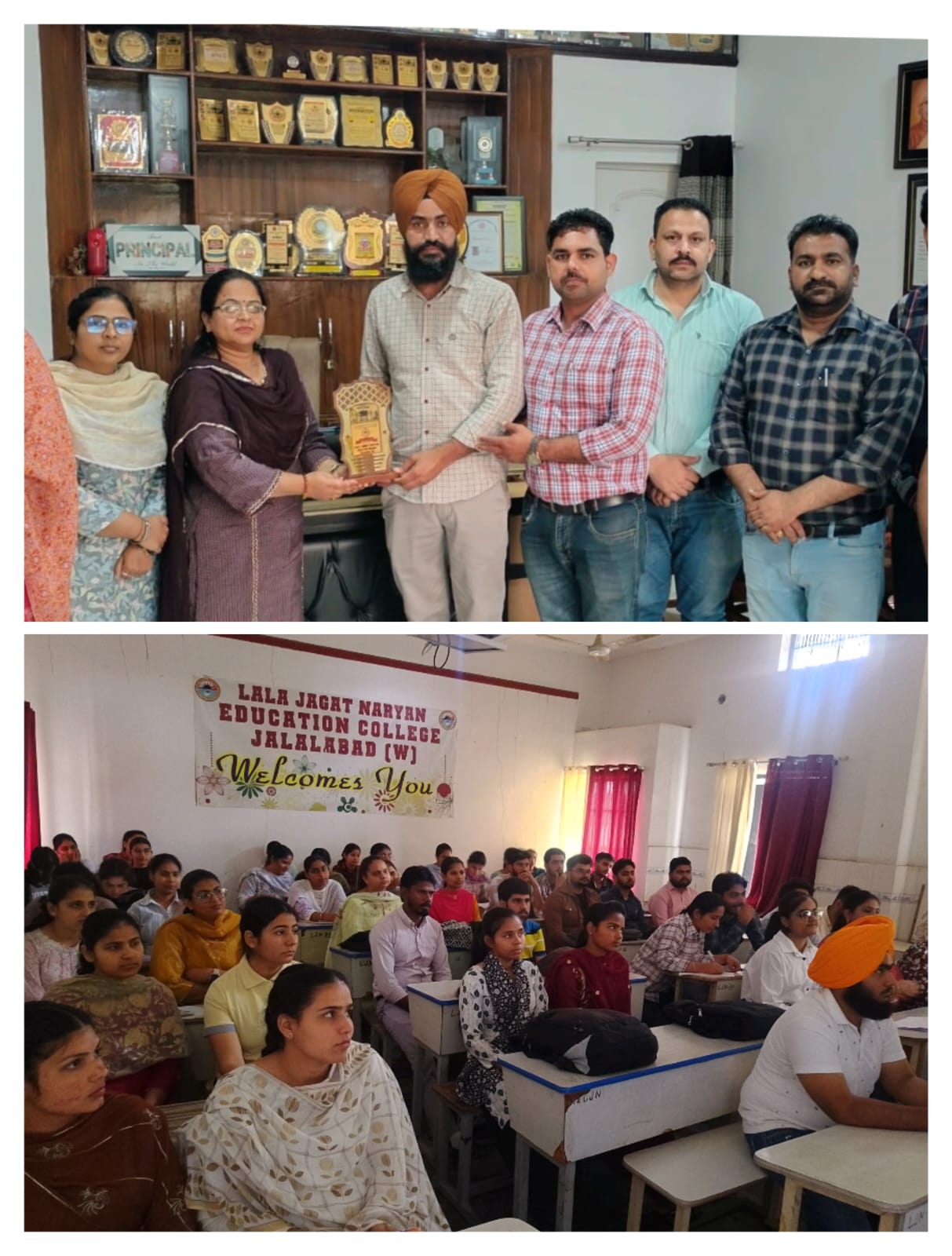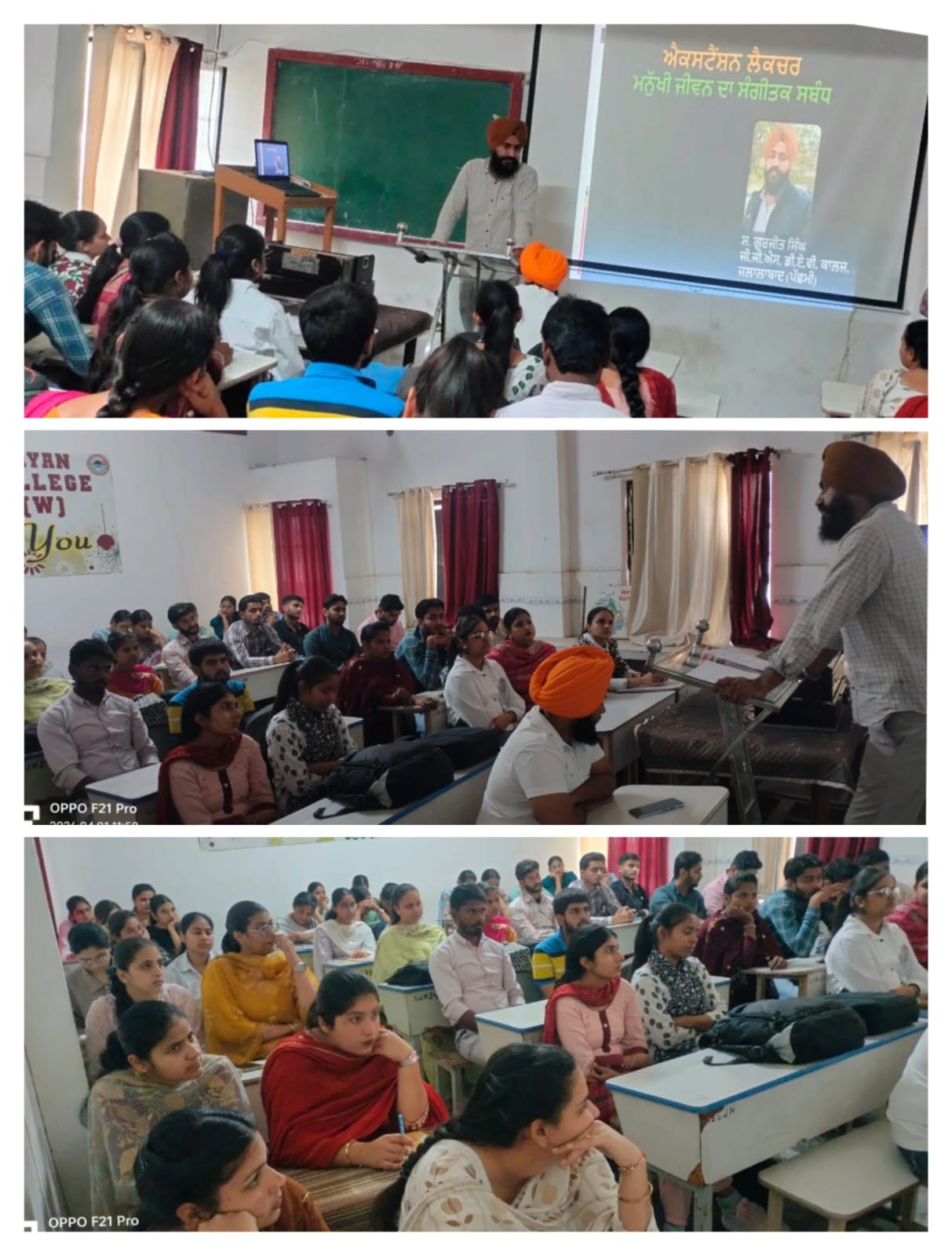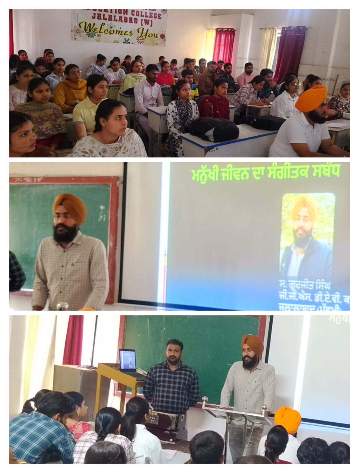 ਲਾਲਾ ਜਗਤ ਨਾਰਾਇਣ ਐਜੁਕੇਸ਼ਨ ਕਾਲਜ ਜਲਾਲਾਬਾਦ ਪੱਛਮੀ ਵਿਖੇ ਮਨੁੱਖੀ ਜੀਵਨ ਦਾ ਸੰਗੀਤਕ ਸਬੰਧੀ ਤੇ ਕਰਵਾਇਆ ਗਿਆ ਐਕਸਟੈਨਸ਼ਨ ਲੈਕਚਰ।