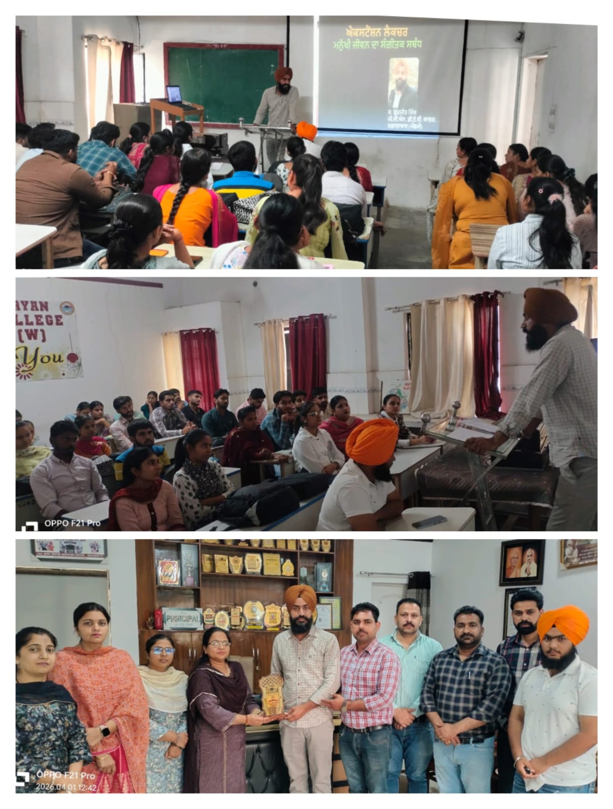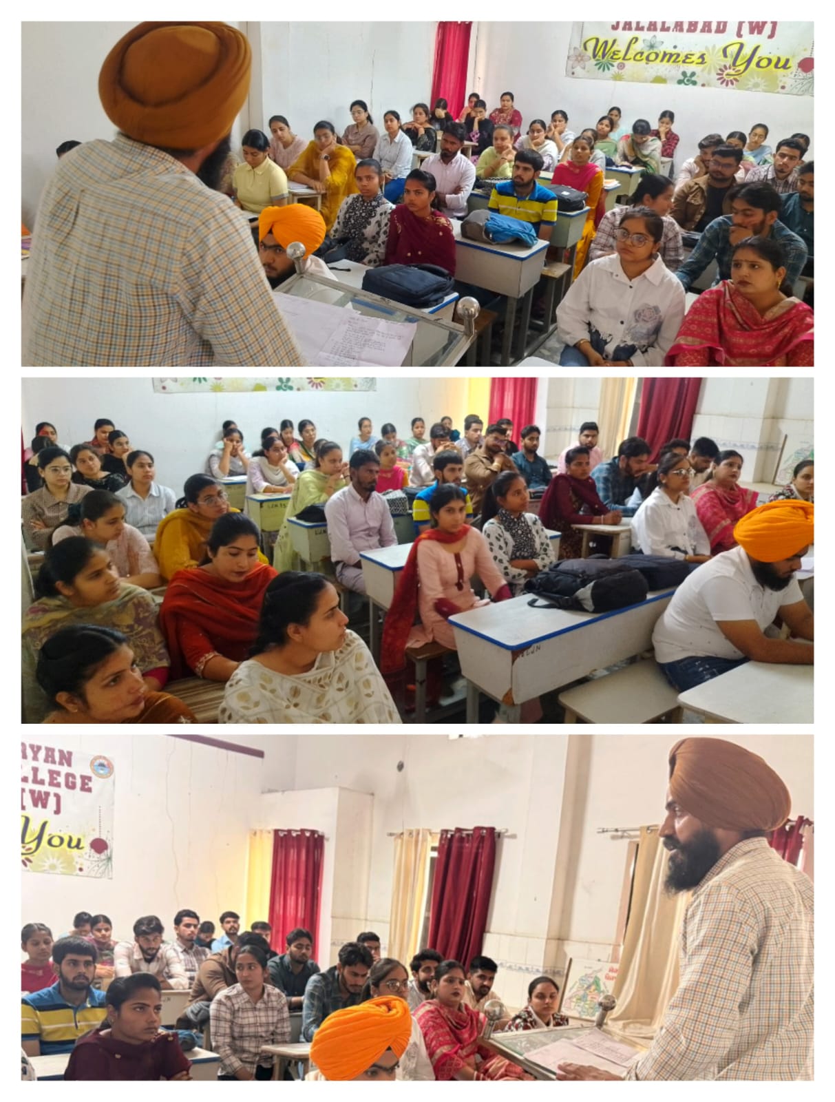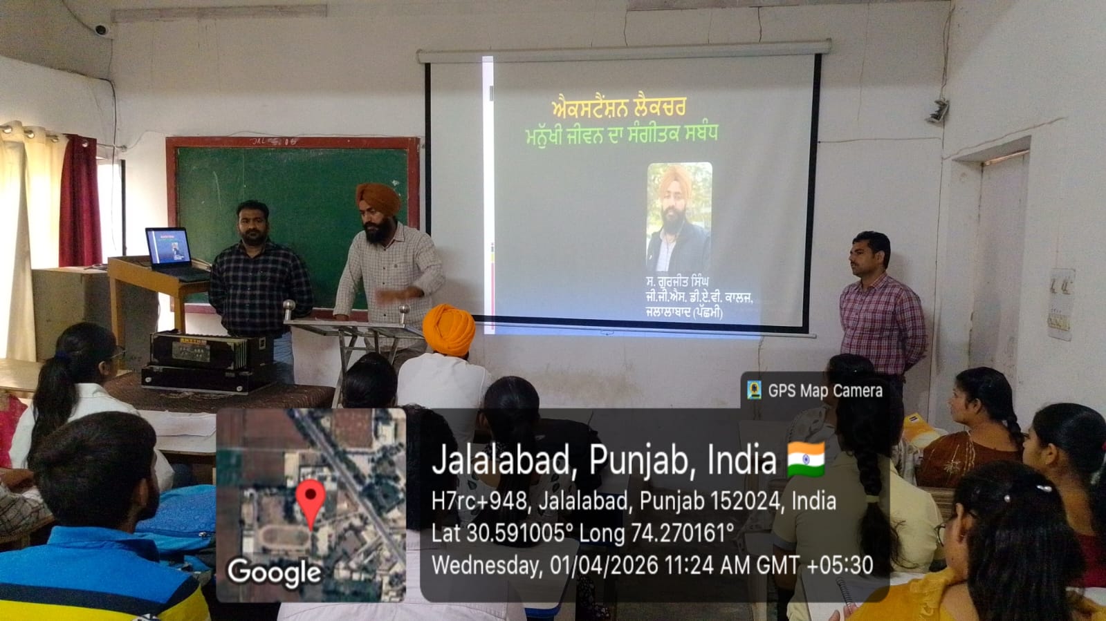 ਲਾਲਾ ਜਗਤ ਨਾਰਾਇਣ ਐਜੁਕੇਸ਼ਨ ਕਾਲਜ ਜਲਾਲਾਬਾਦ ਪੱਛਮੀ ਵਿਖੇ ਮਨੁੱਖੀ ਜੀਵਨ ਦਾ ਸੰਗੀਤਕ ਸਬੰਧੀ ਤੇ ਕਰਵਾਇਆ ਗਿਆ ਐਕਸਟੈਨਸ਼ਨ ਲੈਕਚਰ।