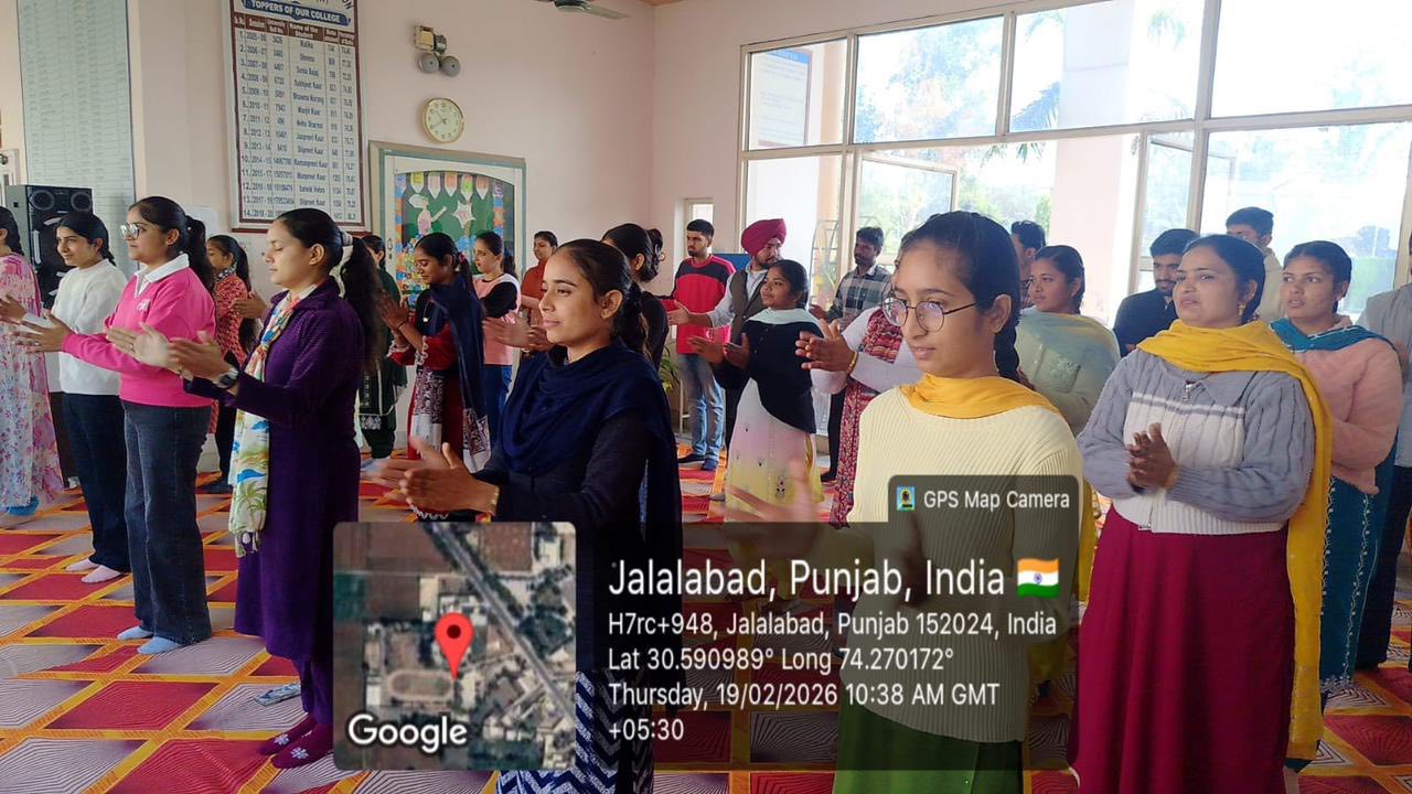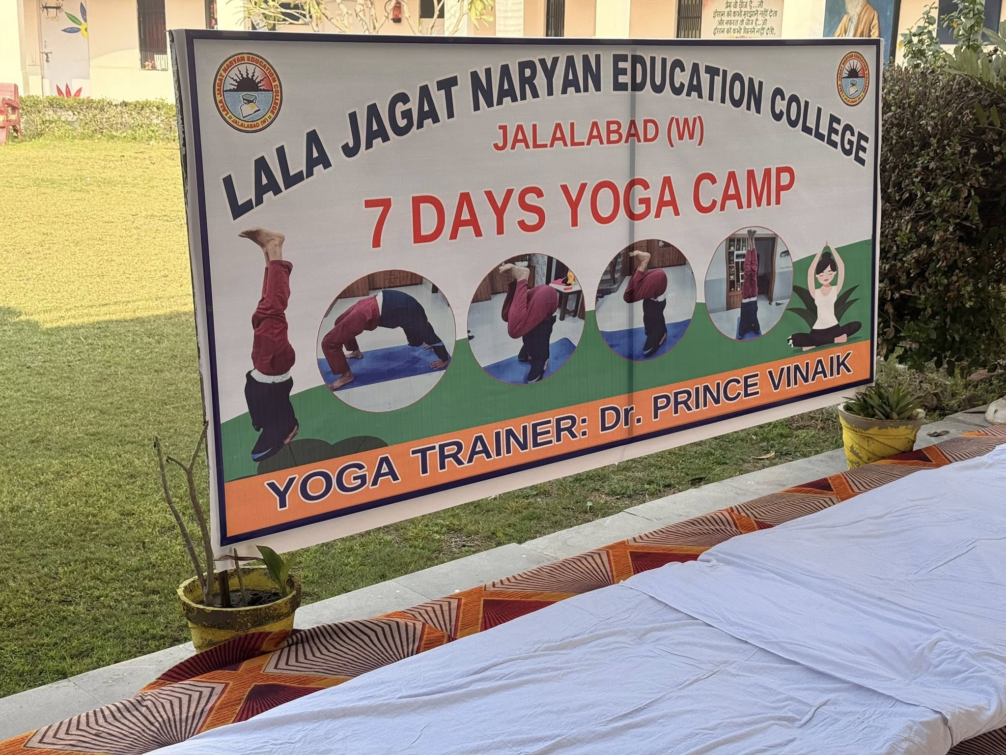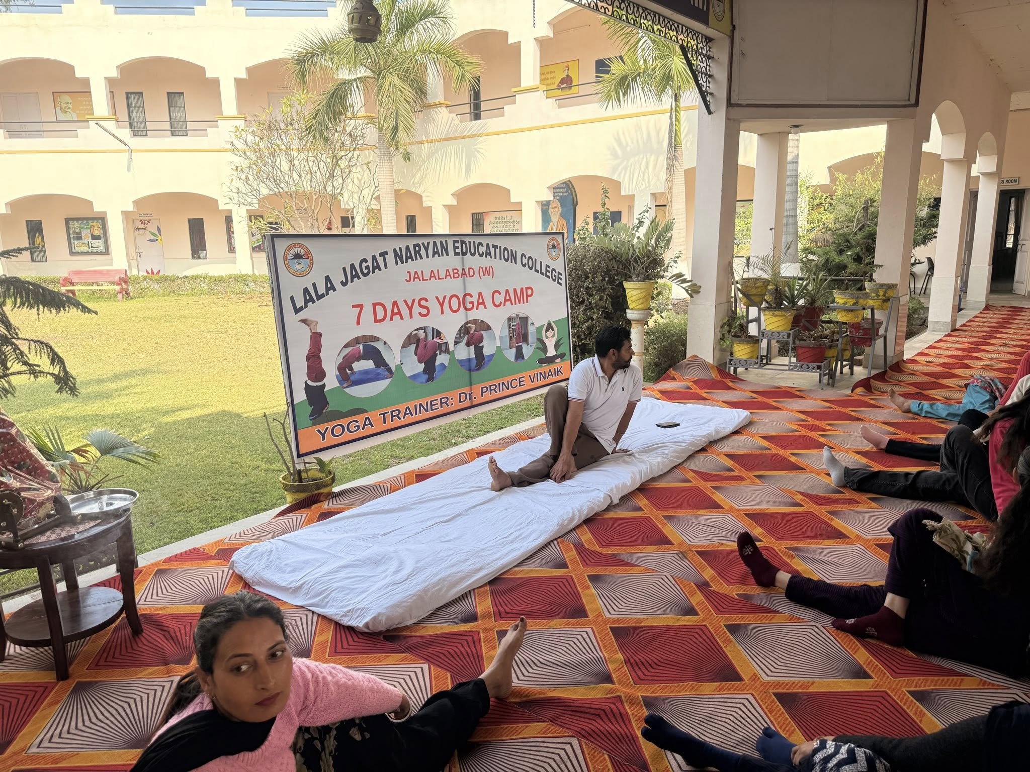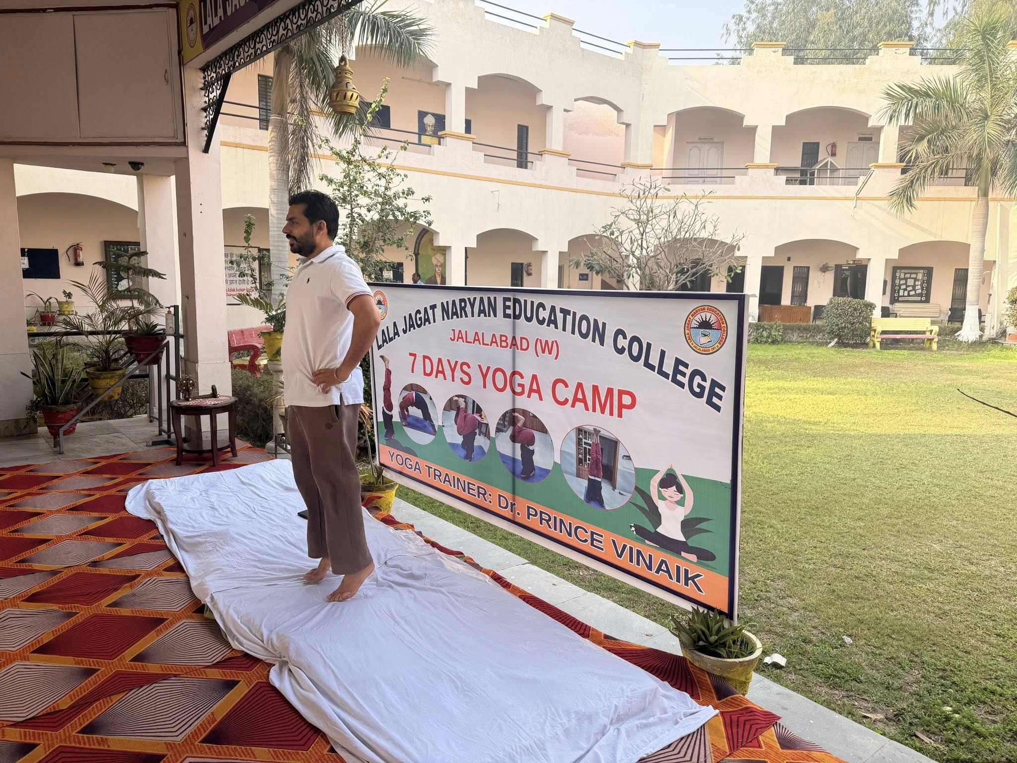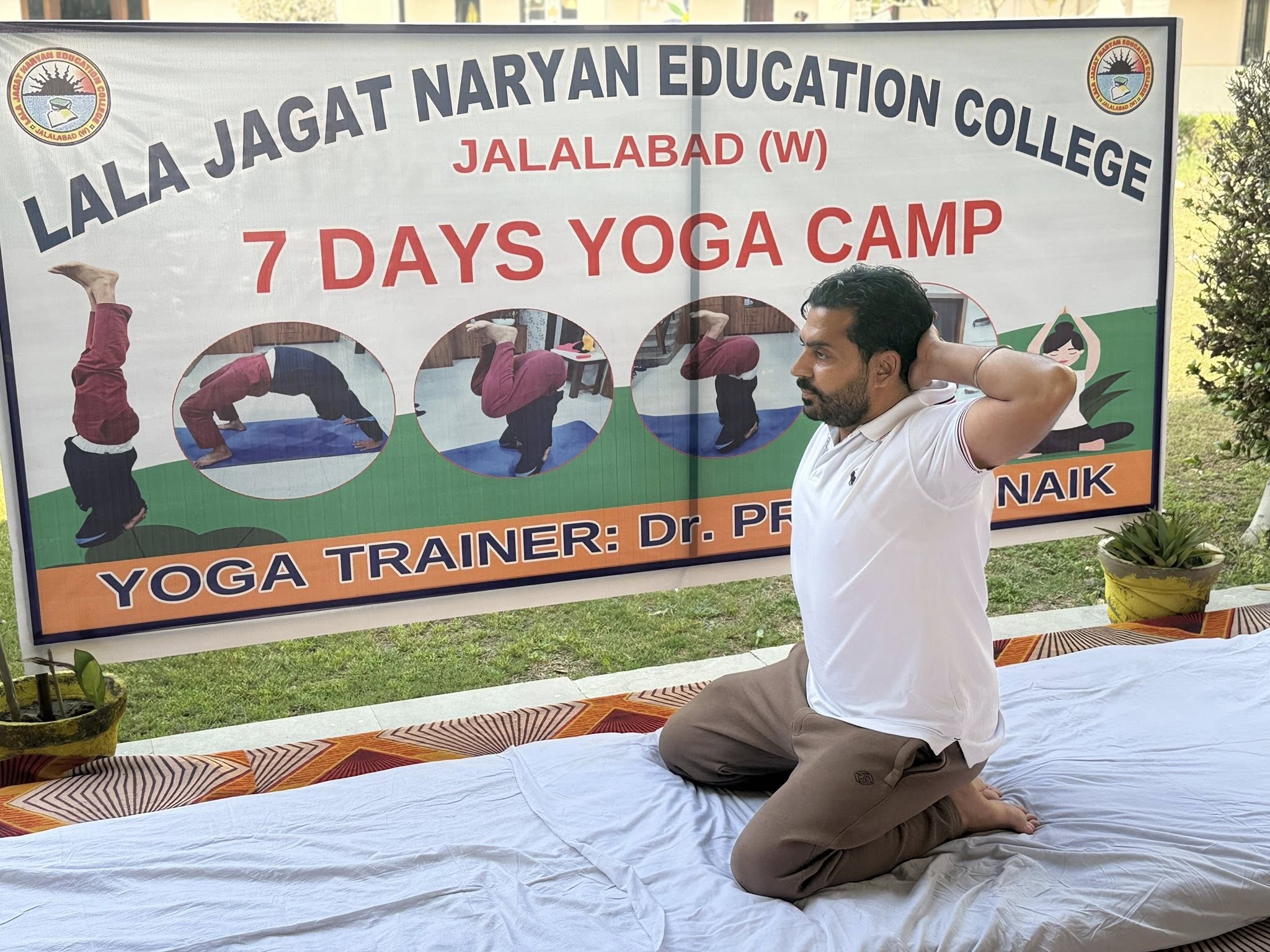 ਲਾਲਾ ਜਗਤ ਨਾਰਾਇਣ ਐਜੁਕੇਸ਼ਨ ਕਾਲਜ ਜਲਾਲਾਬਾਦ ਪੱਛਮੀ ਵਿਖੇ ਸਪਤਾਹ ਯੋਗ ਅਭਿਆਸ ਦਾ ਸਫਲਤਾਪੂਰਵਕ ਸਮਾਪਤ ਹੋਣ ਉਪਰੰਤ ਸਹਾਇਕ ਪ੍ਰੋਫ਼ੈਸਰ ਡਾ ਪ੍ਰਿੰਸ ਵਿਨਾਇਕ