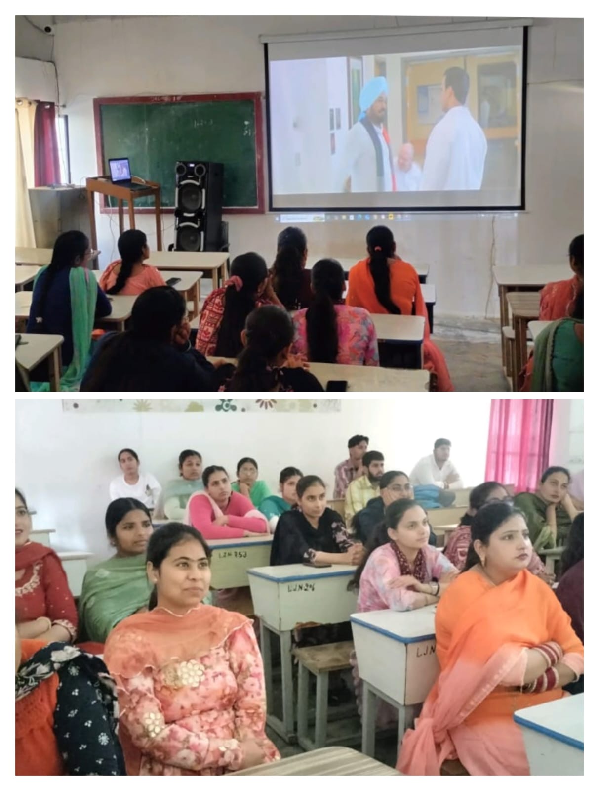 ਸਥਾਨਕ ਲਾਲਾ ਜਗਤ ਨਾਰਾਇਣ ਐਜੁਕੇਸ਼ਨ ਕਾਲਜ ਜਲਾਲਾਬਾਦ ਪੱਛਮੀ ਵਿਖੇ ਵਿਦਿਆਰਥੀਆਂ ਦੀ ਪੜ੍ਹਾਈ ਦੇ ਨਾਲ ਨਾਲ ਮਨੋਰੰਜਨ ਲਈ ਫਿਲਮ ਦਾ ਆਯੋਜਨ।