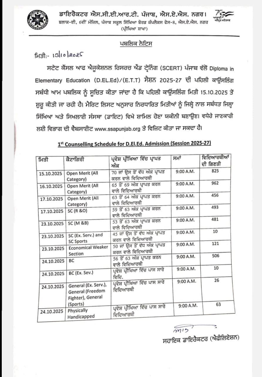 First Councelling schedule of D.El.Ed 2025-2027 Session.